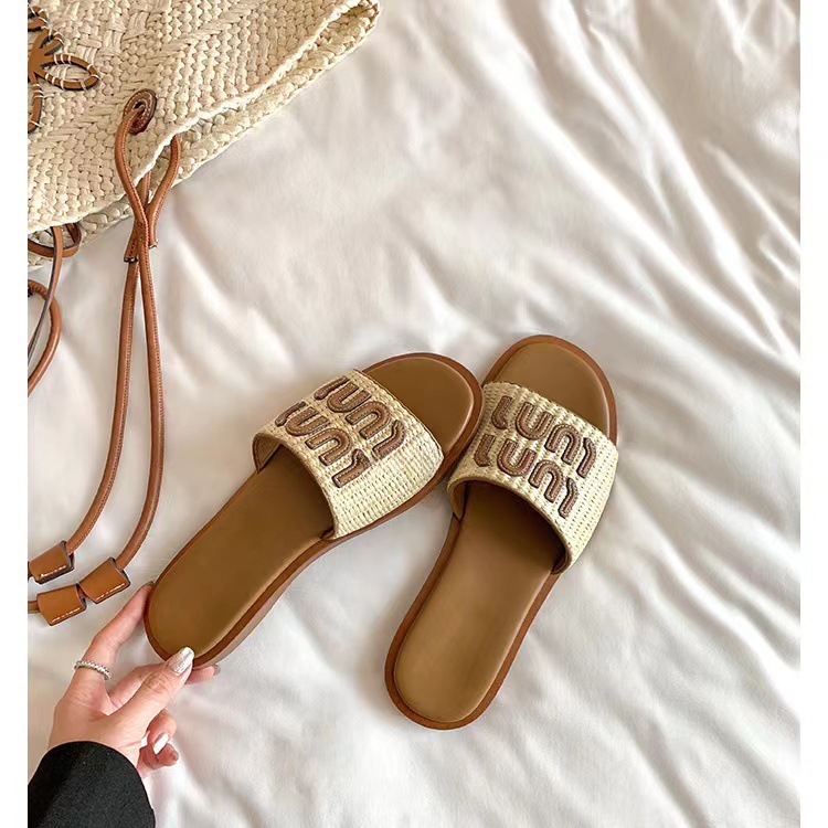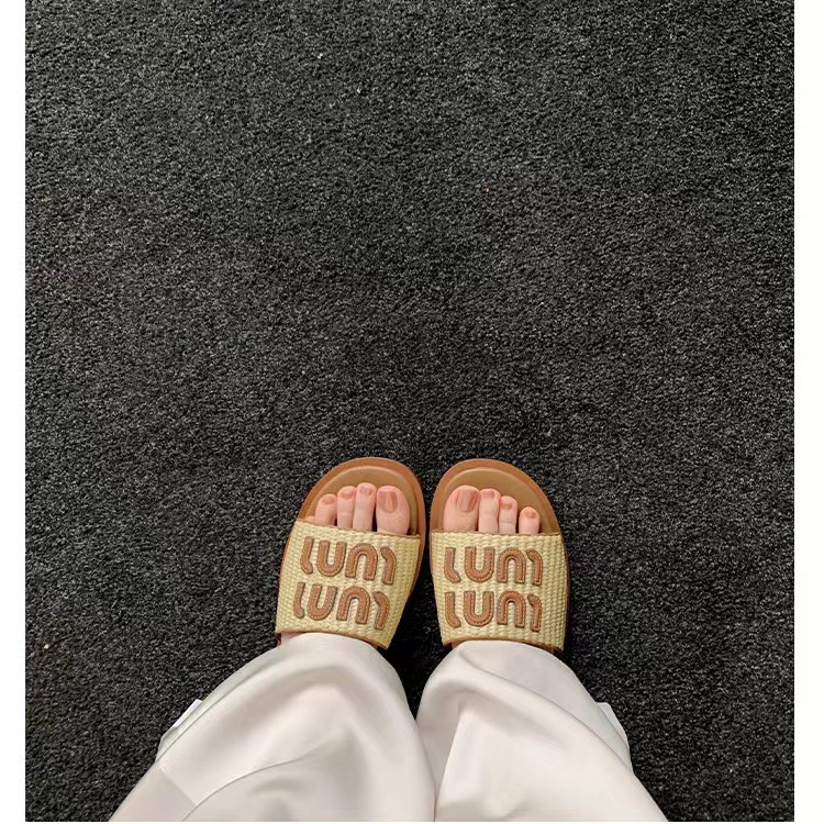 【平底轻巧!方头舒适】方头平底一字拖鞋女2024夏新款度假编织平底沙滩拖鞋大码凉拖外穿,舒适透气;平底设计,凉爽不累赘。ry