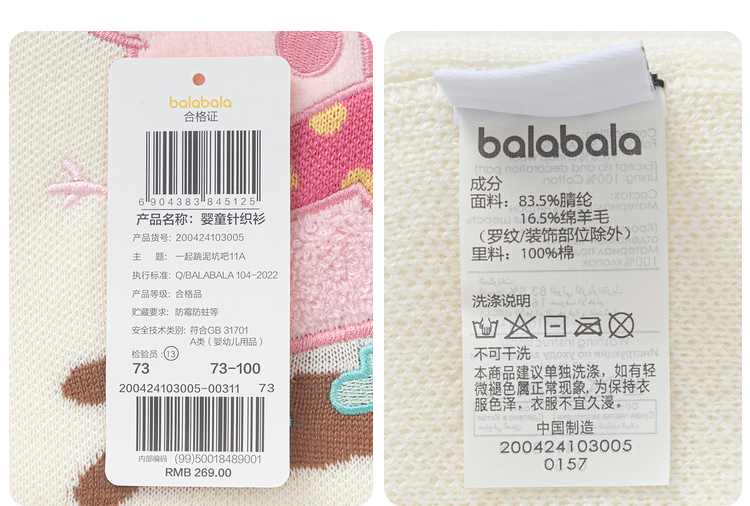 【小猪佩奇IP】巴拉巴拉婴儿毛衣儿童冬季线衫女童套头针织衫萌
