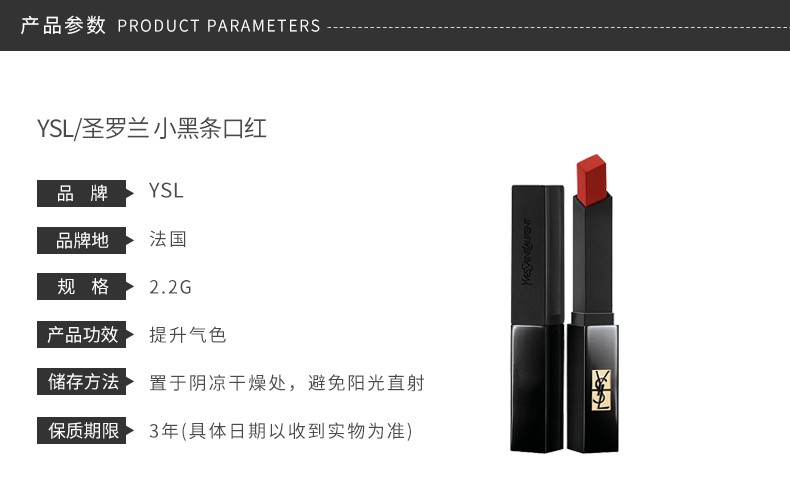 YSL/圣罗兰 细管丝绒纯口红 小黑条314