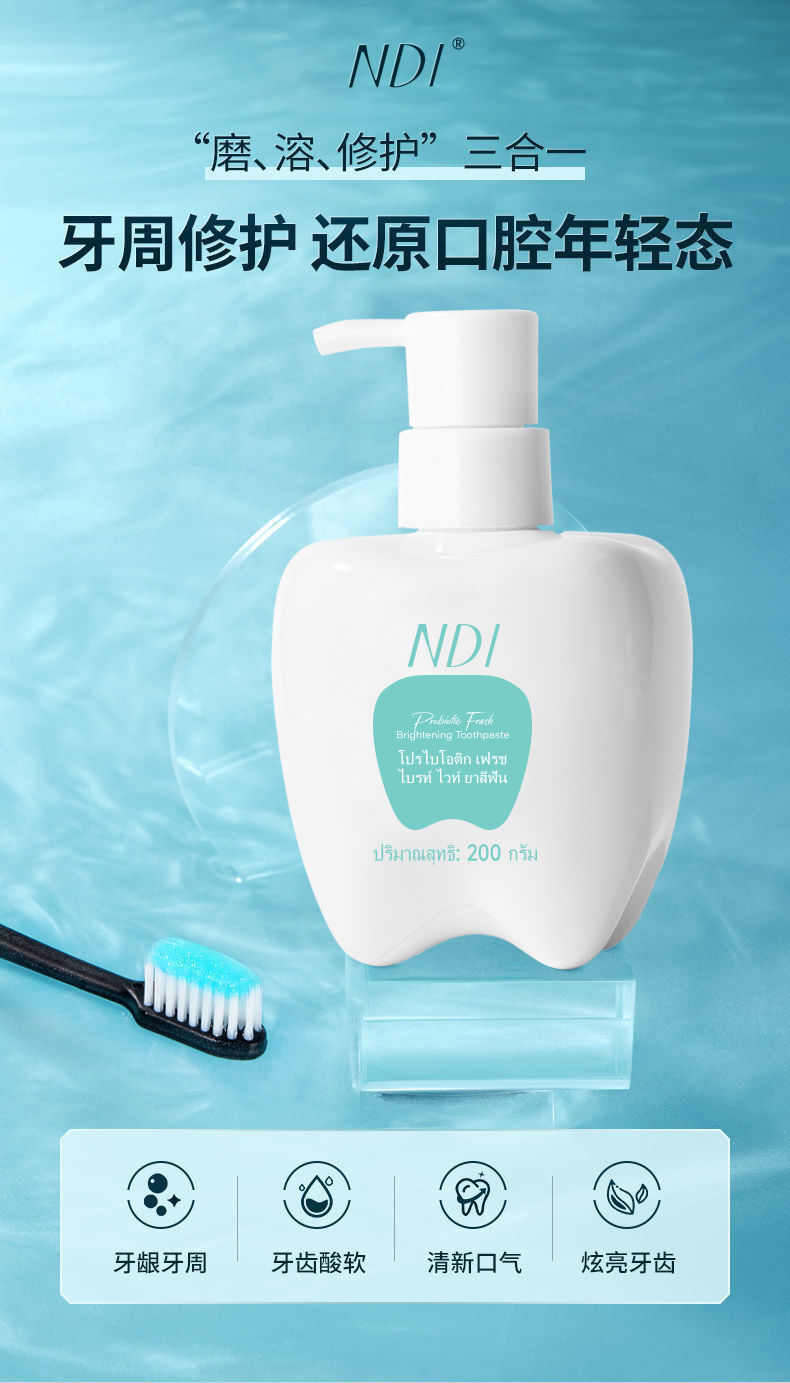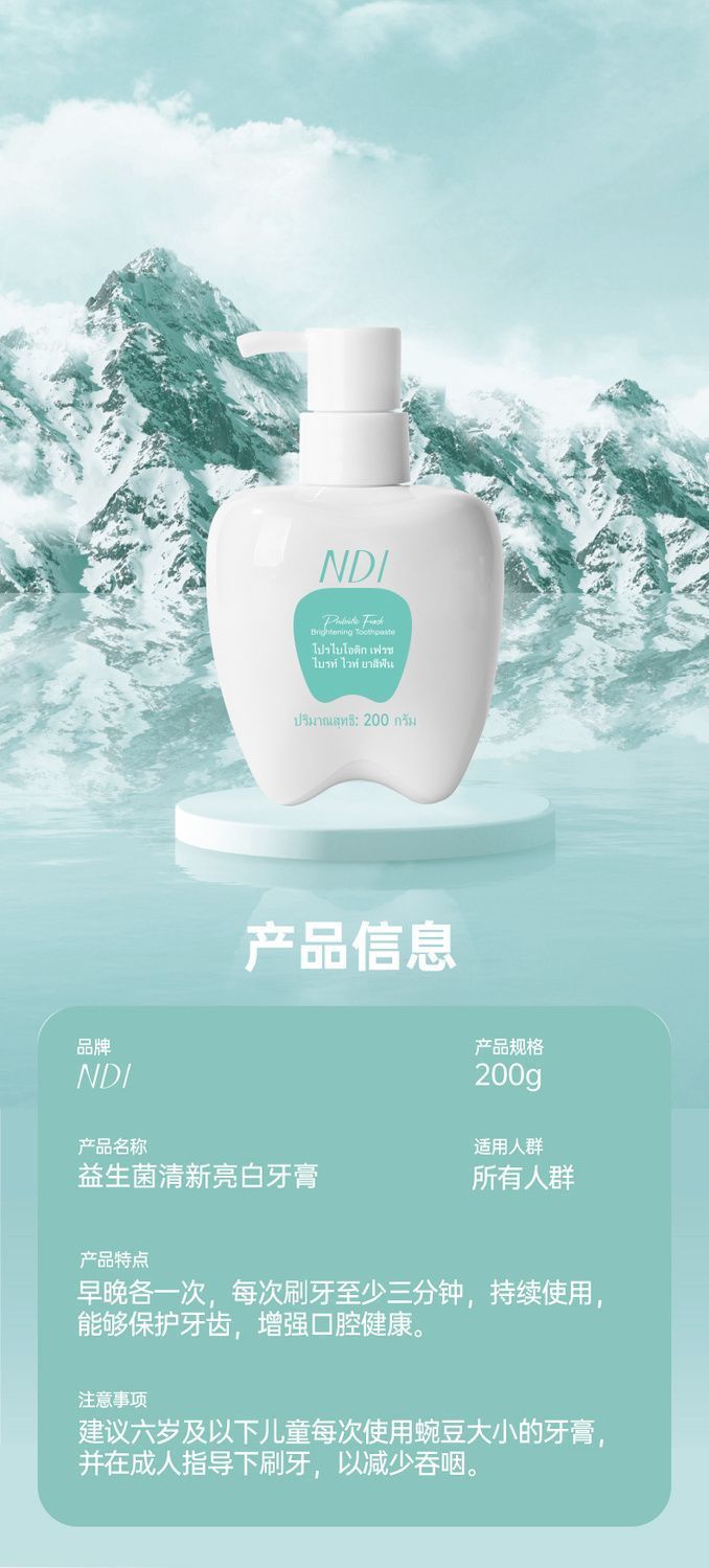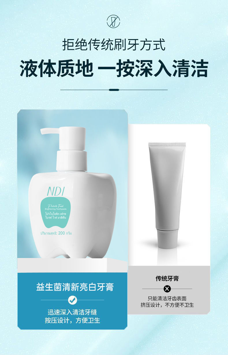 【爆款超低价预售 急单慎拍】NDI益生菌清新亮白牙膏清新口气防蛀清洁去黄去口臭