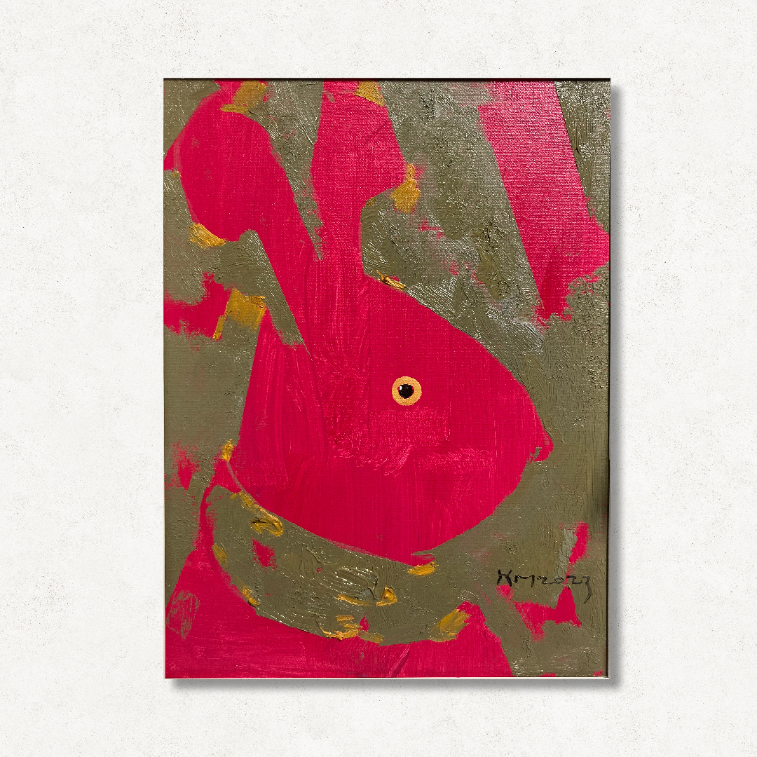 B15 孙洪敏《兔兔新曲》40*30CM 布面油画 手绘原作 已装框(白色木制)艺术家本人特供 仅有1张现货顺丰包邮