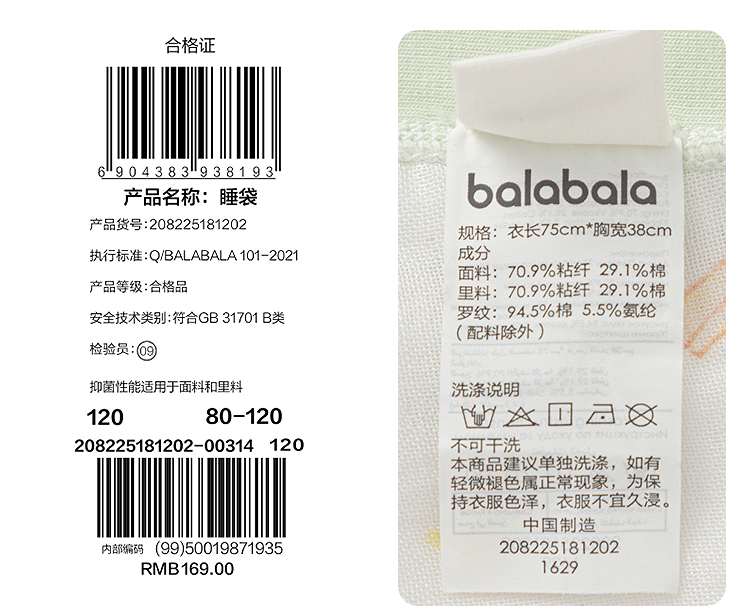 巴拉巴拉婴儿睡袋宝宝儿童睡衣新生儿柔软亲肤舒适印花满印可爱萌