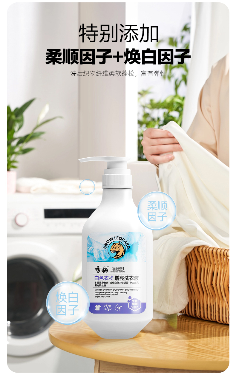 雪豹生态家清 白色衣物增亮洗衣液(生物酵素)500g 32069