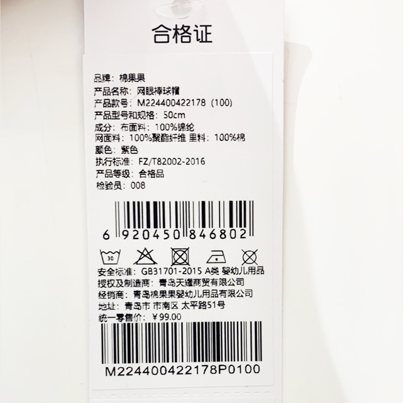 棉果果夏季遮阳帽网眼棒球帽透气不闷汗男女童M224400422178