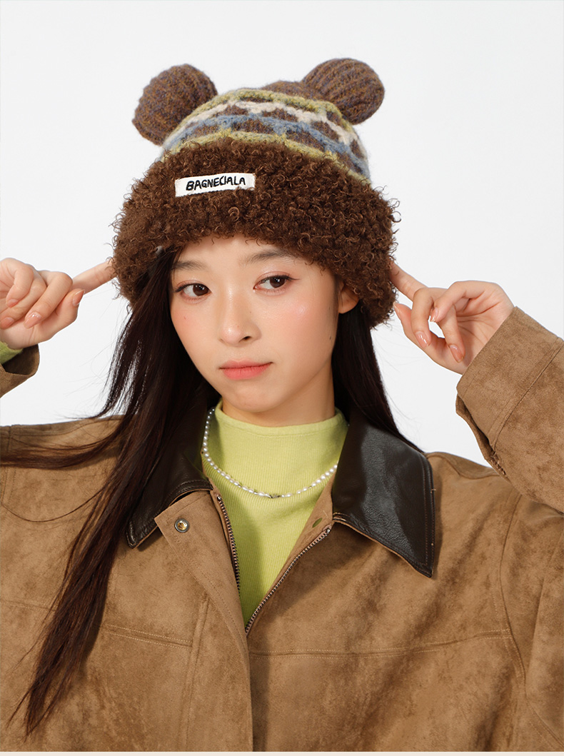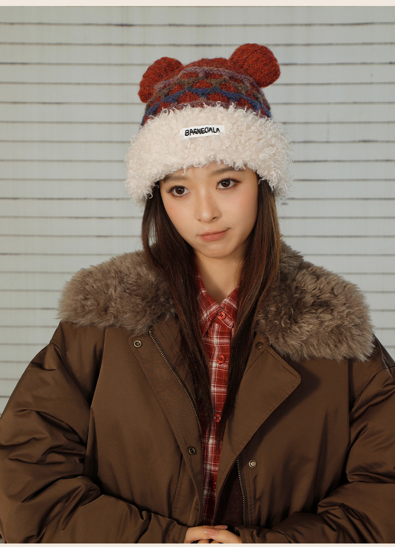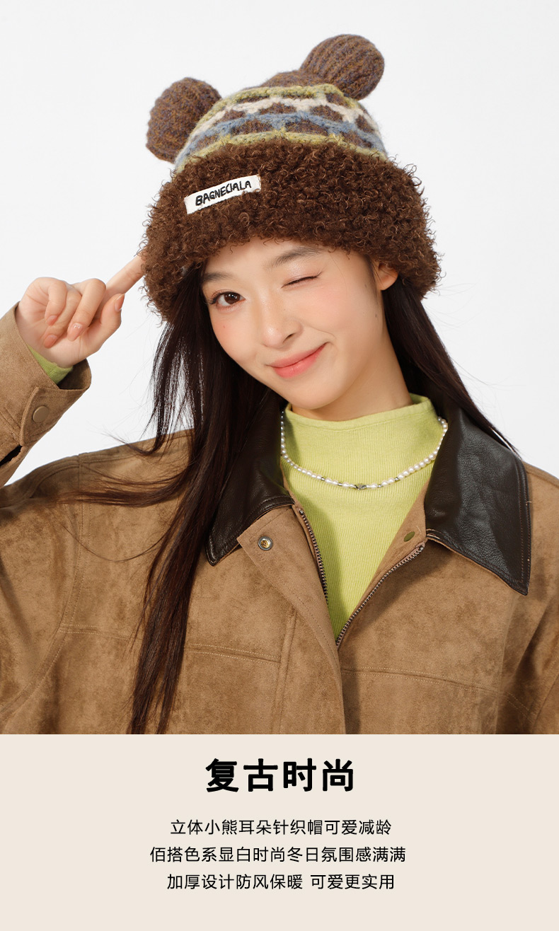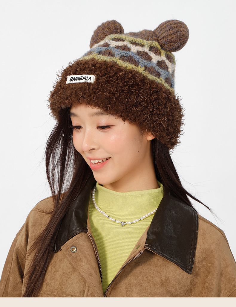 立体格纹小熊针织帽帽子-纪念日百货门店同款166745441