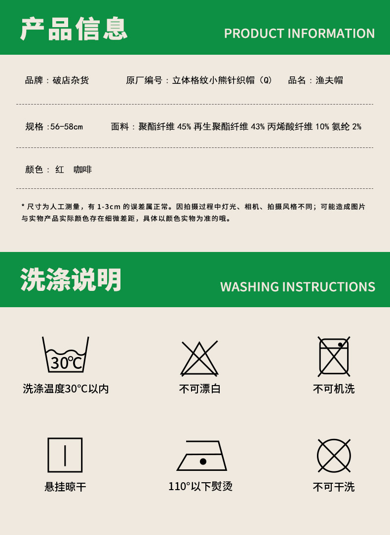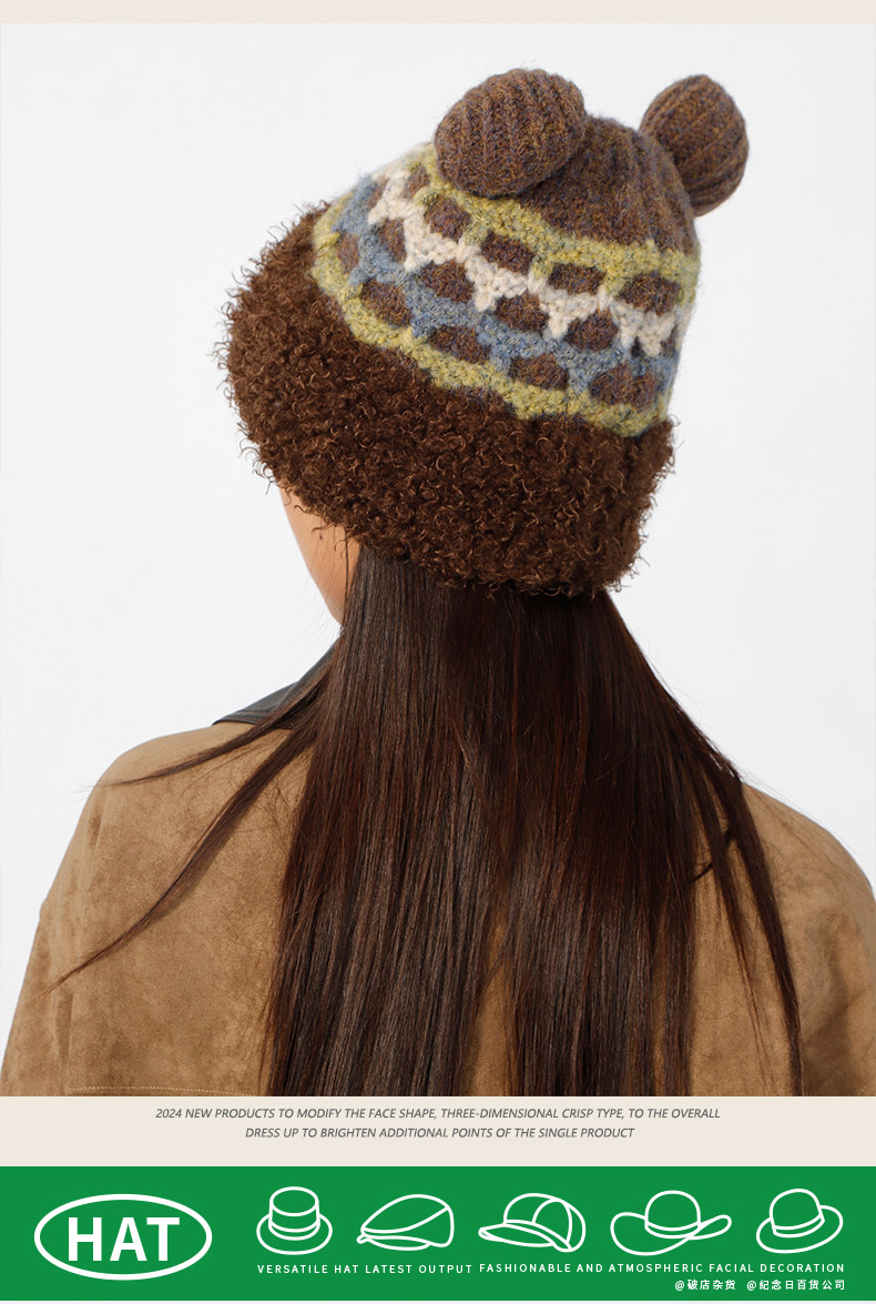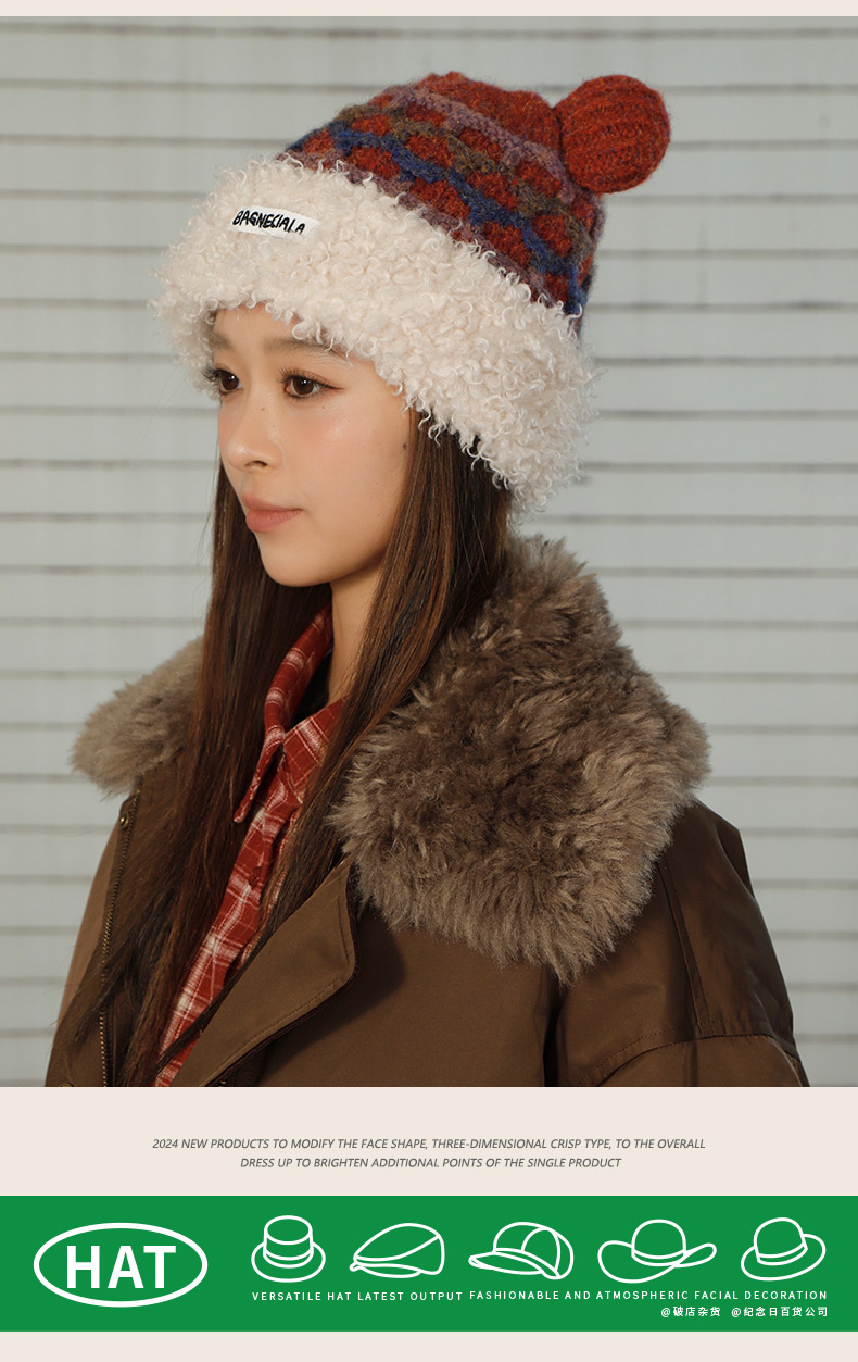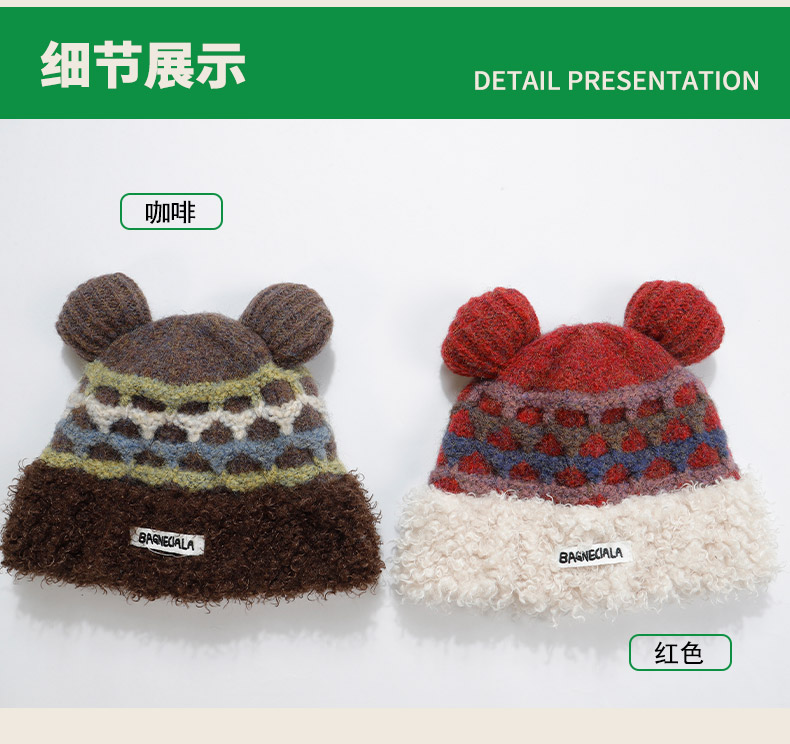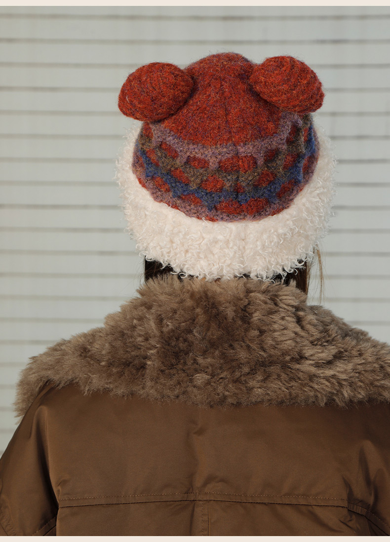 立体格纹小熊针织帽帽子-纪念日百货门店同款166745441