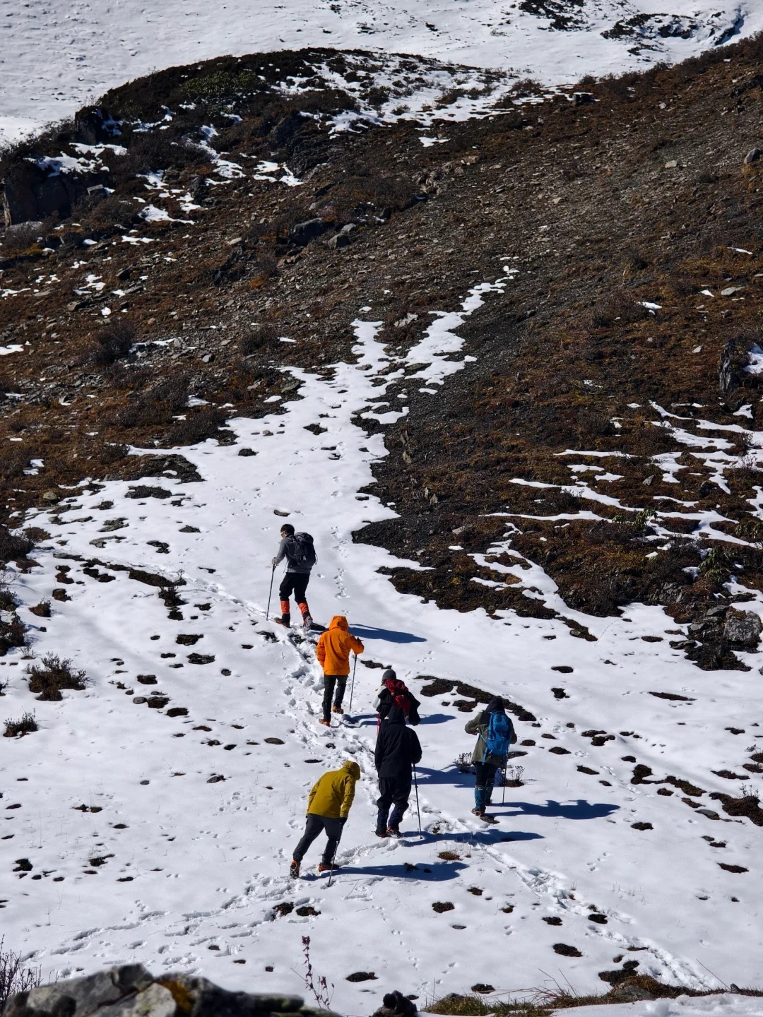 随着海拔不断升高,雪景愈发壮美,脚下的路也渐渐陡峭起来,领队会一路上给大家加油打气。大家相互帮助,爬上雪山的那刻,你肯定会为自己感到骄傲。