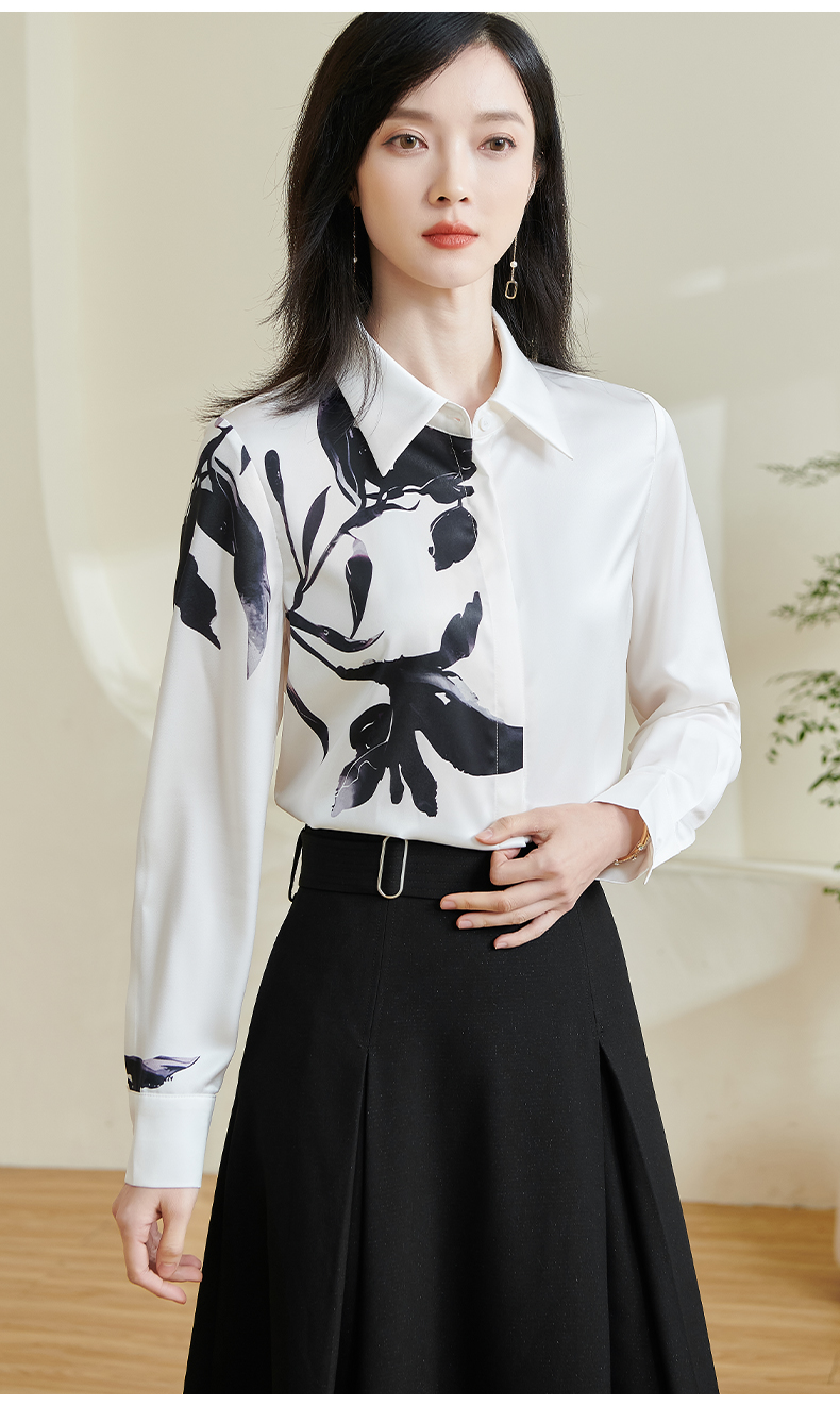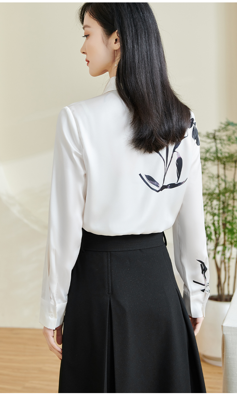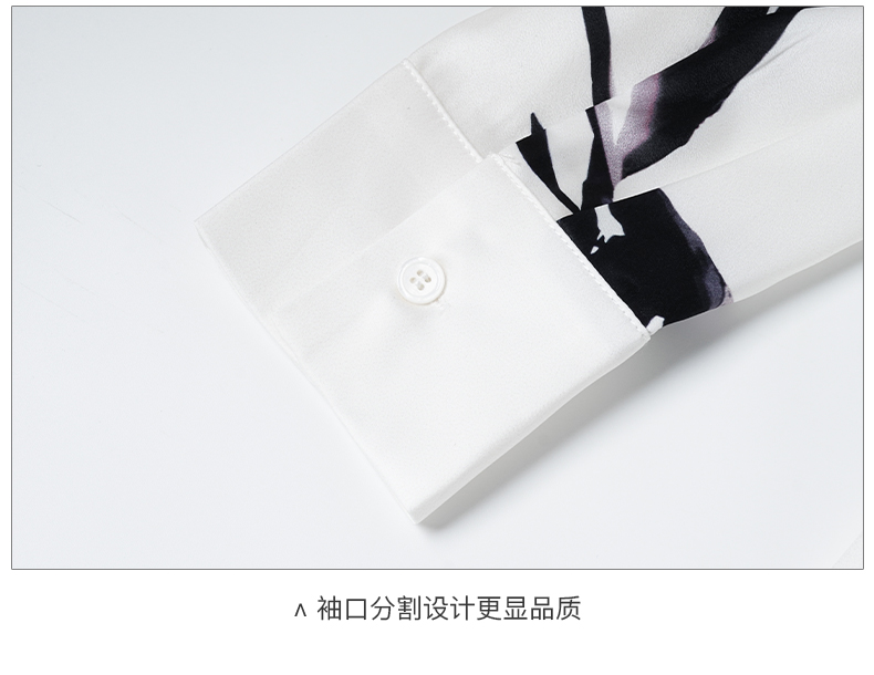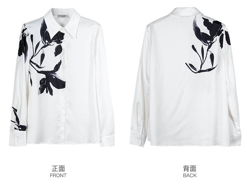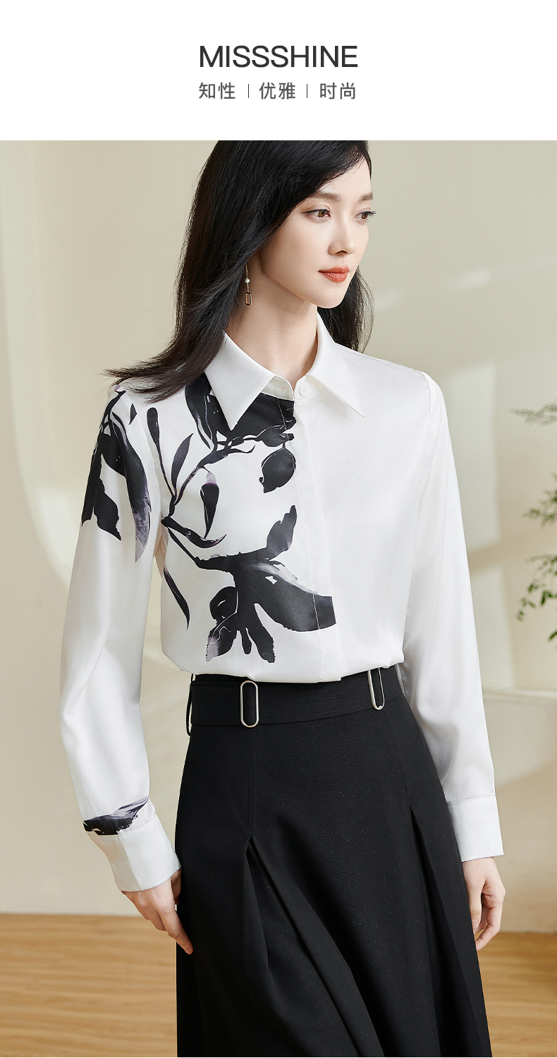 「墨影松枝」水墨印花通勤衬衫 清冷雅致 米思阳2026春季新款知性设计感水墨印花衬衫宽松抗皱白色上衣0430/1061