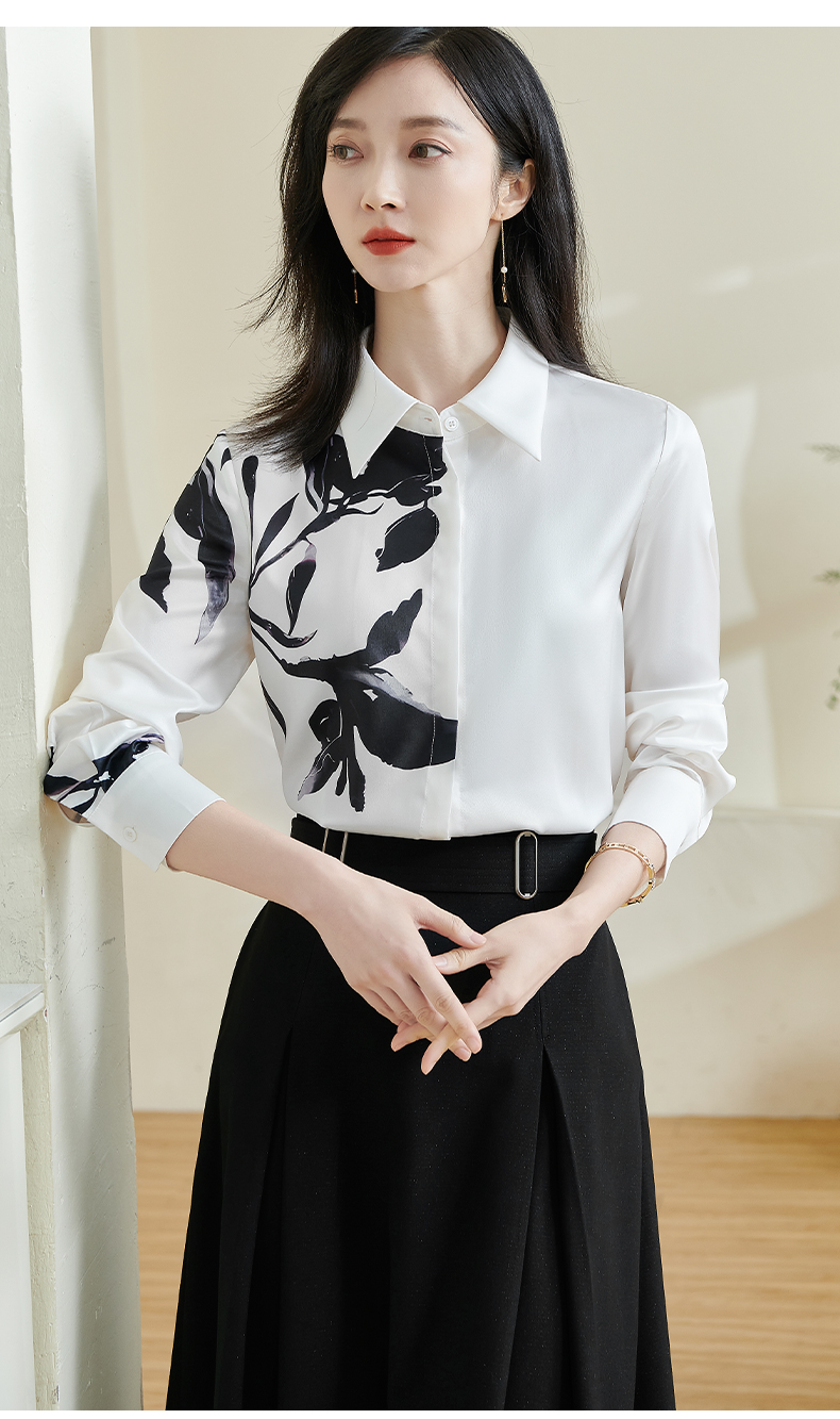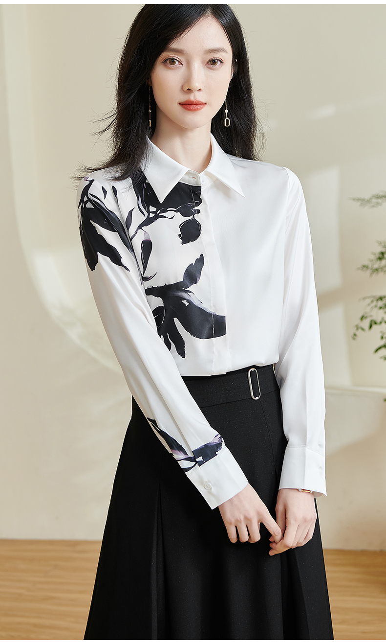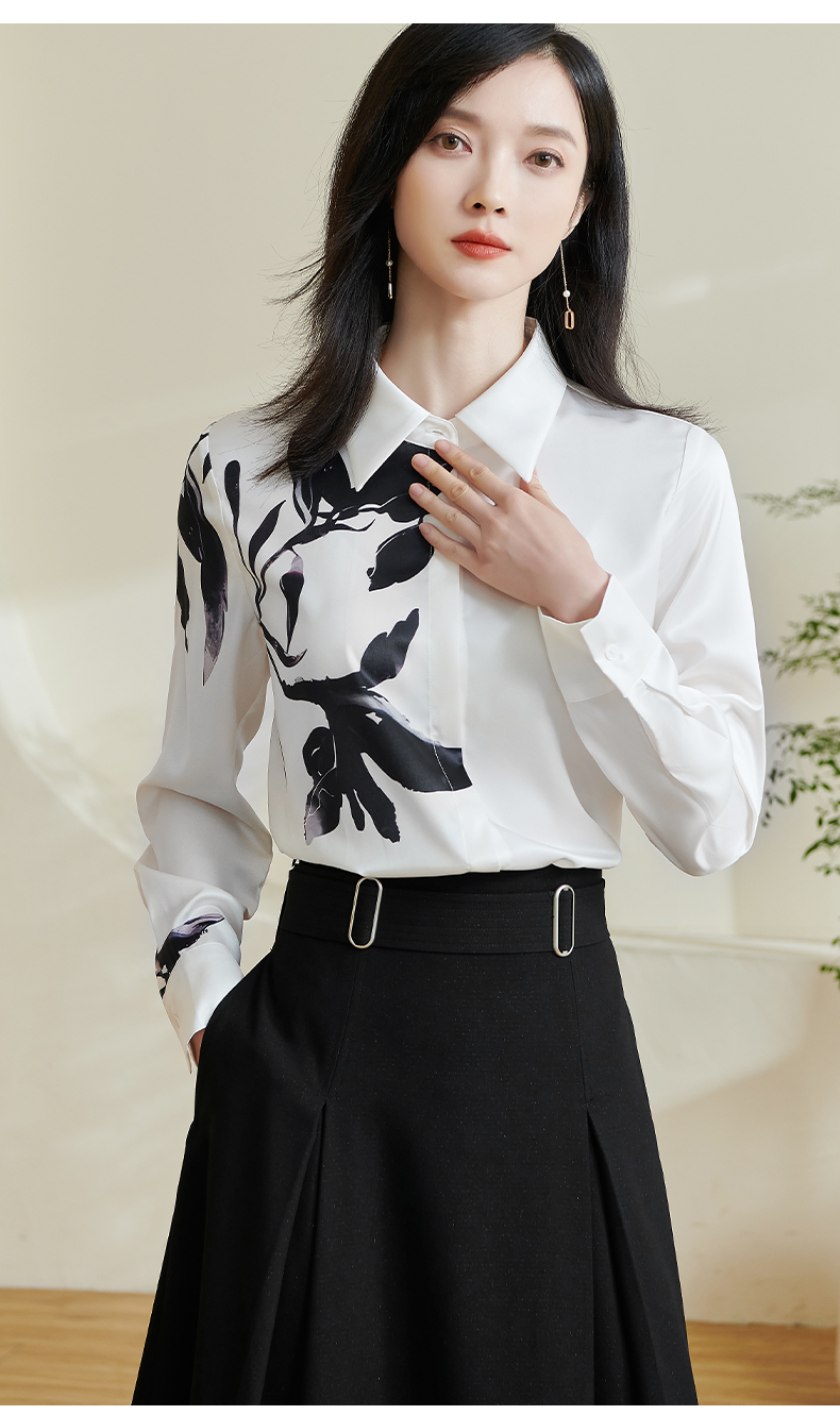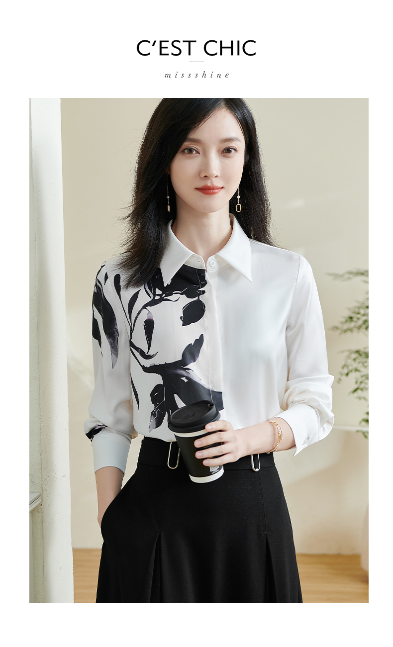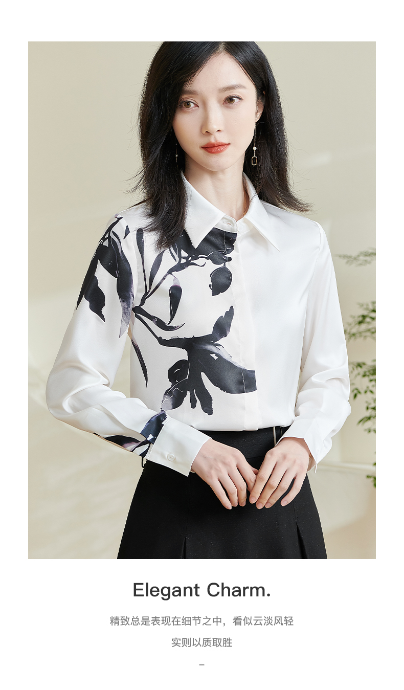 「墨影松枝」水墨印花通勤衬衫 清冷雅致 米思阳2026春季新款知性设计感水墨印花衬衫宽松抗皱白色上衣0430/1061
