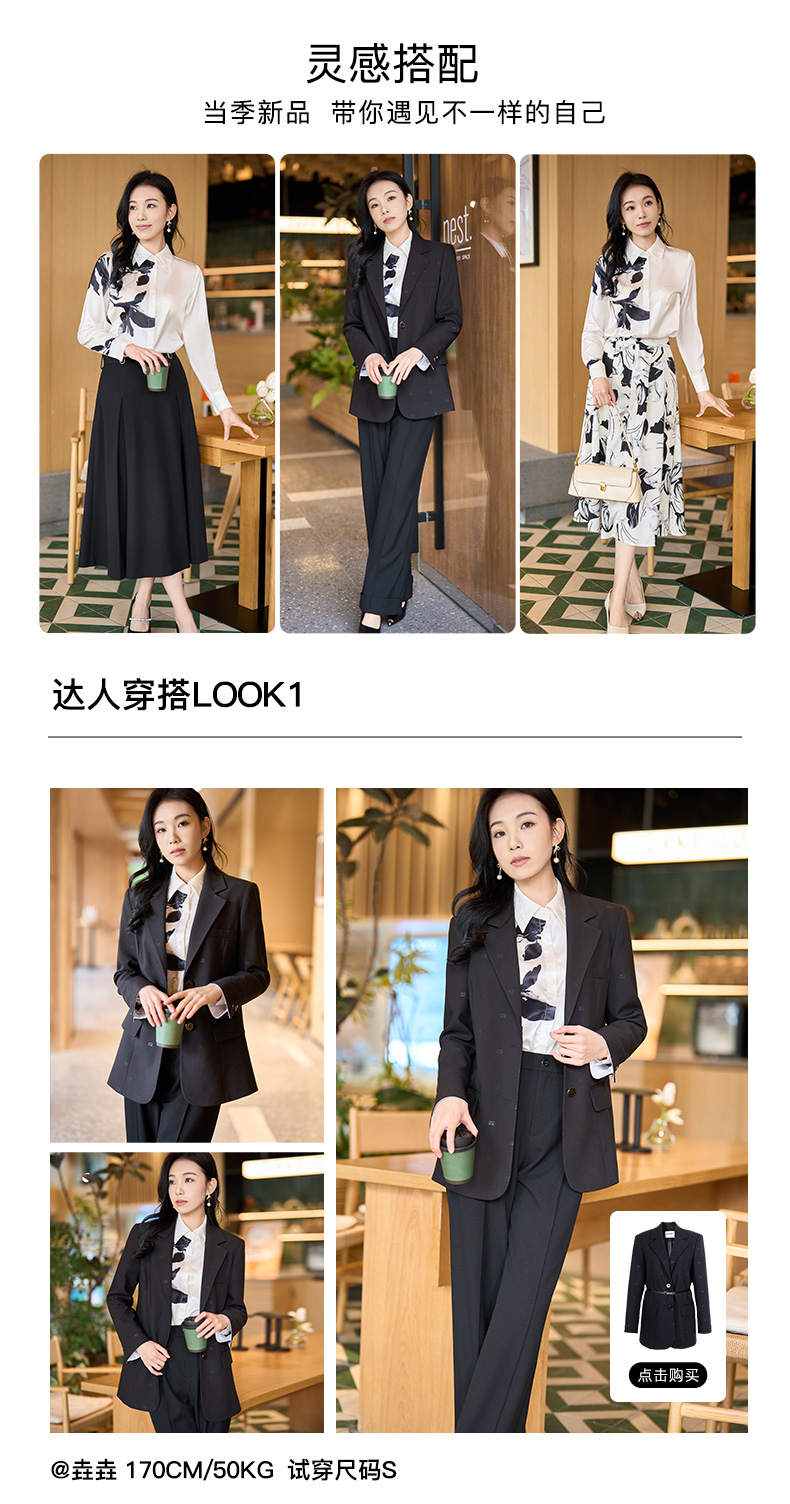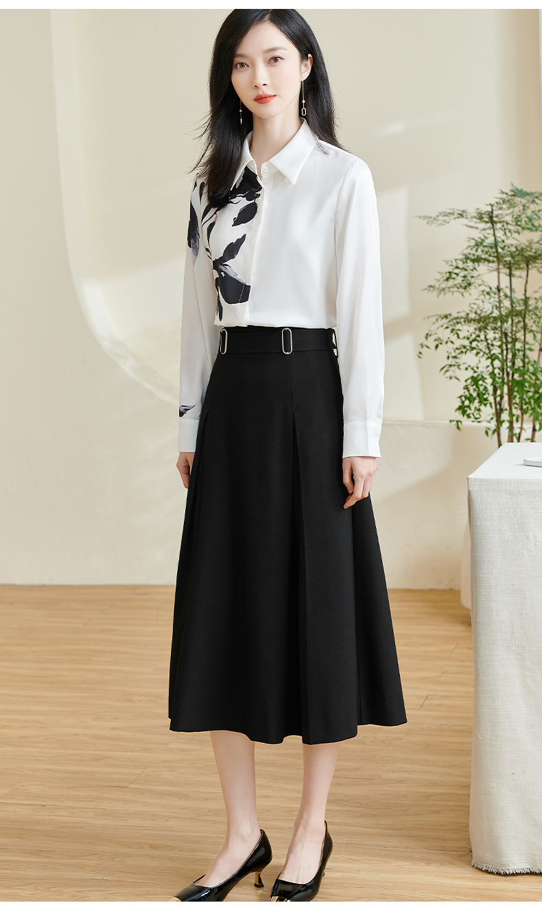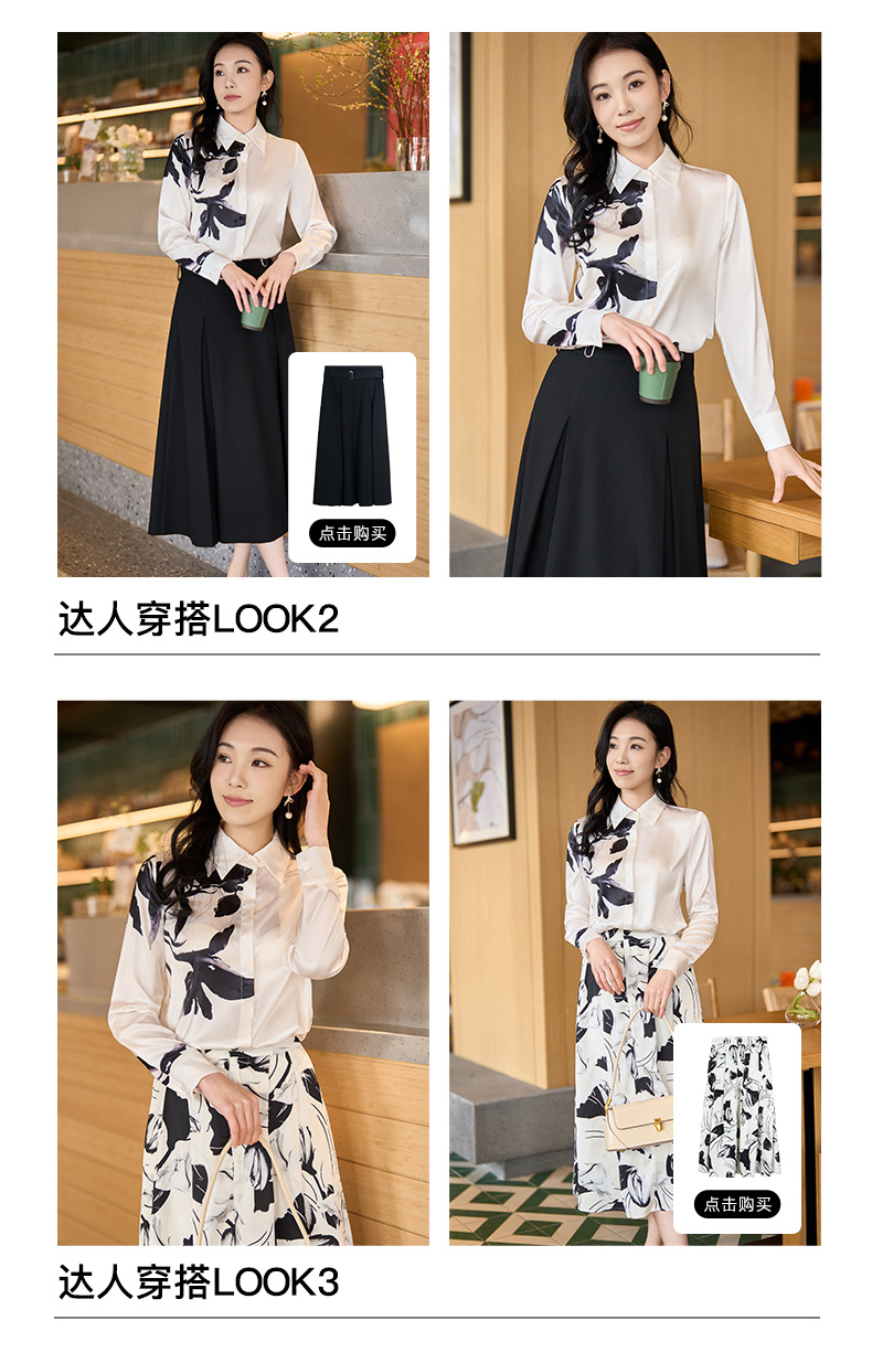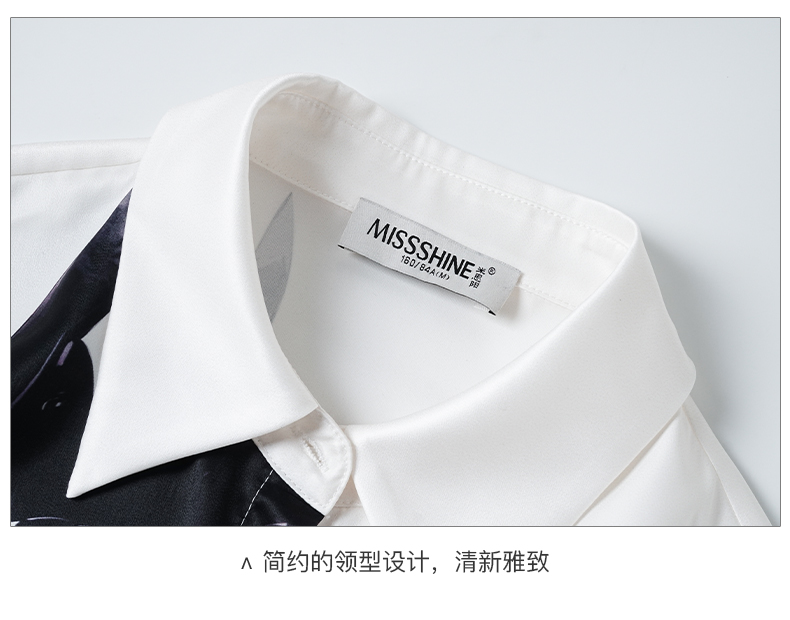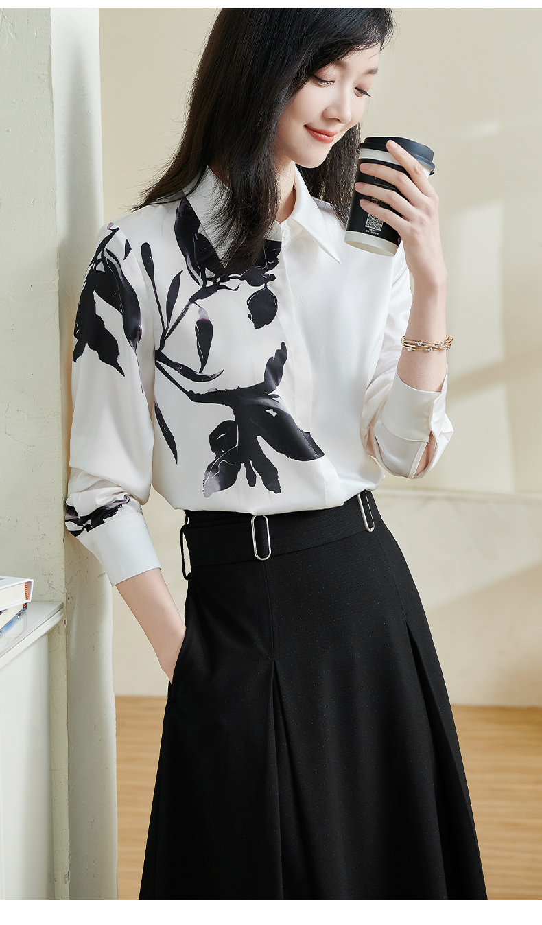 「墨影松枝」水墨印花通勤衬衫 清冷雅致 米思阳2026春季新款知性设计感水墨印花衬衫宽松抗皱白色上衣0430/1061