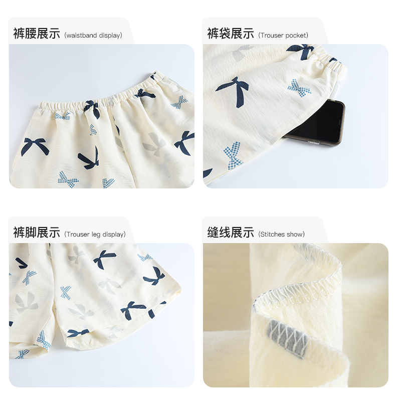 可人儿夏季花朵睡衣女夏天冰丝短袖可外穿仿真丝薄款家居服三件套