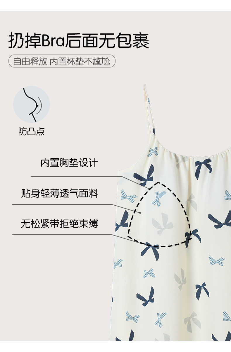 可人儿带bra小众设计新款泡泡绵女士睡衣夏季少女睡裙可外穿居家