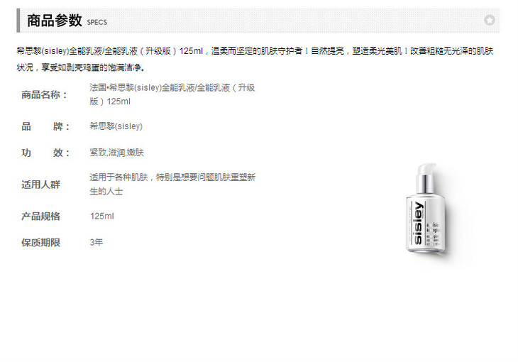 希思黎(Sisley) 全能乳 液滋润保湿补水 全能乳液 60ml、125ml