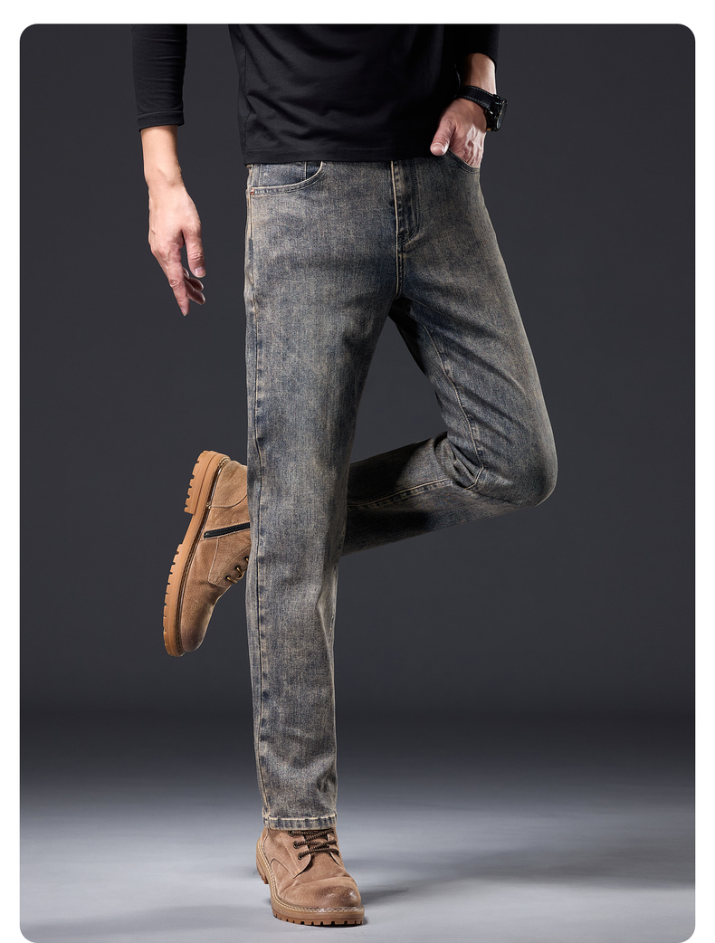 圣得西男士时尚百搭弹力牛仔裤2025秋季新款商务休闲高端质感男裤