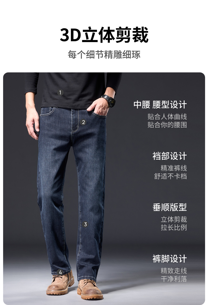 [70.2%棉】圣得西秋季轻商务男士牛仔裤2025新款弹力宽松直筒长裤