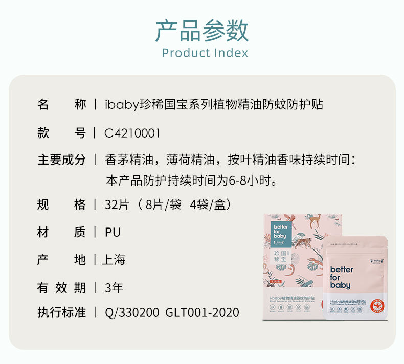 【2021新款】i-baby珍稀国宝系列 植物精油驱蚊防护贴 盒装 WWF联名款