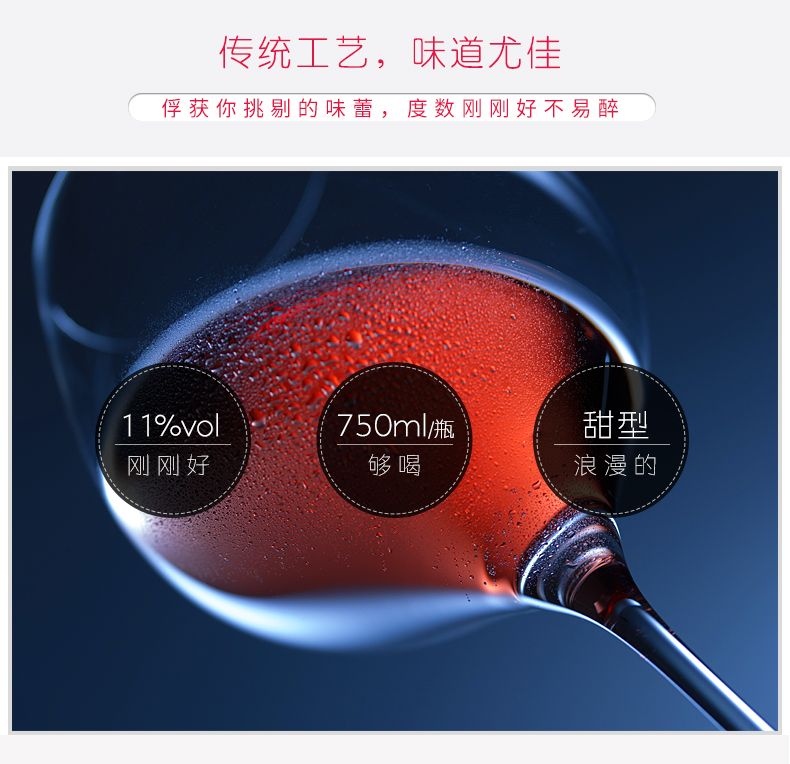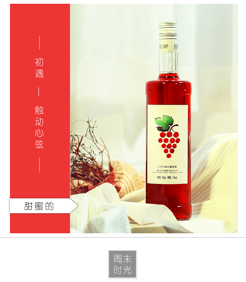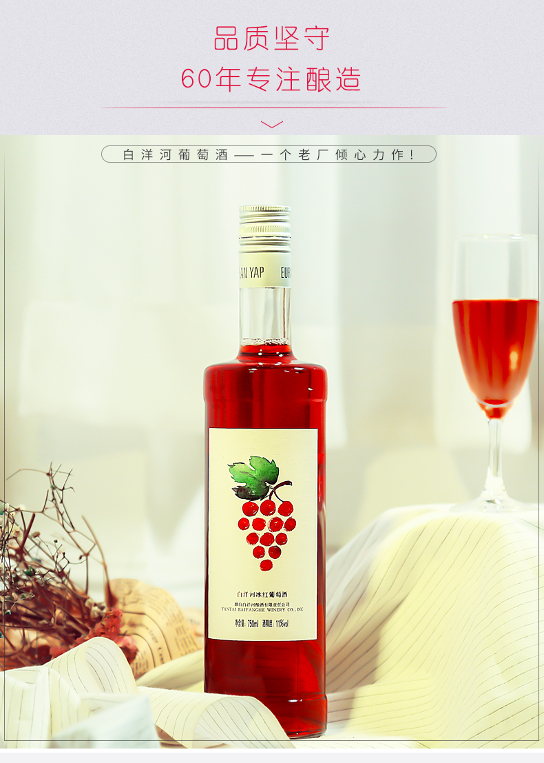 [白洋河冰红]11度-甜葡萄酒甜酒-750ml-6瓶整箱