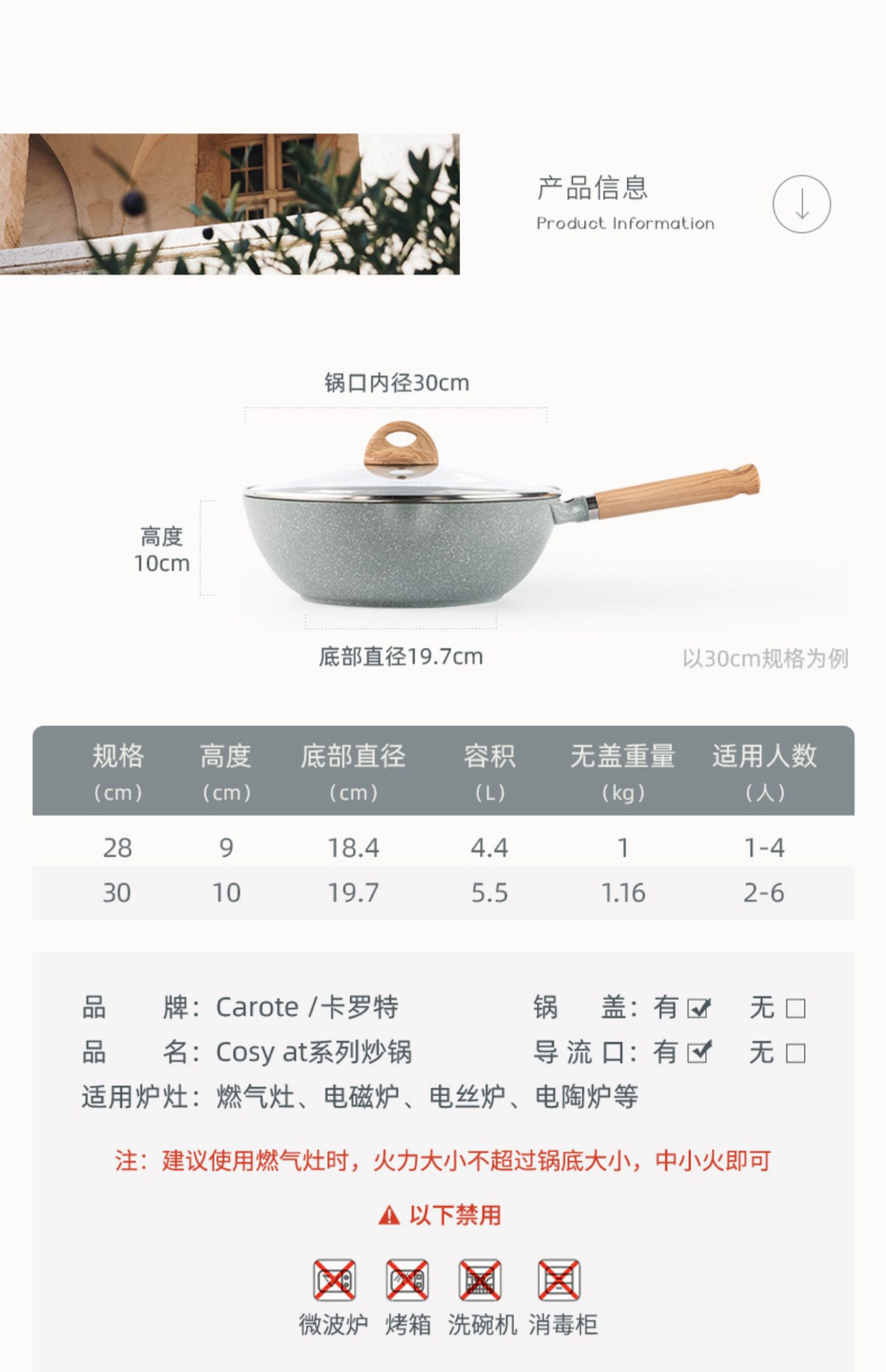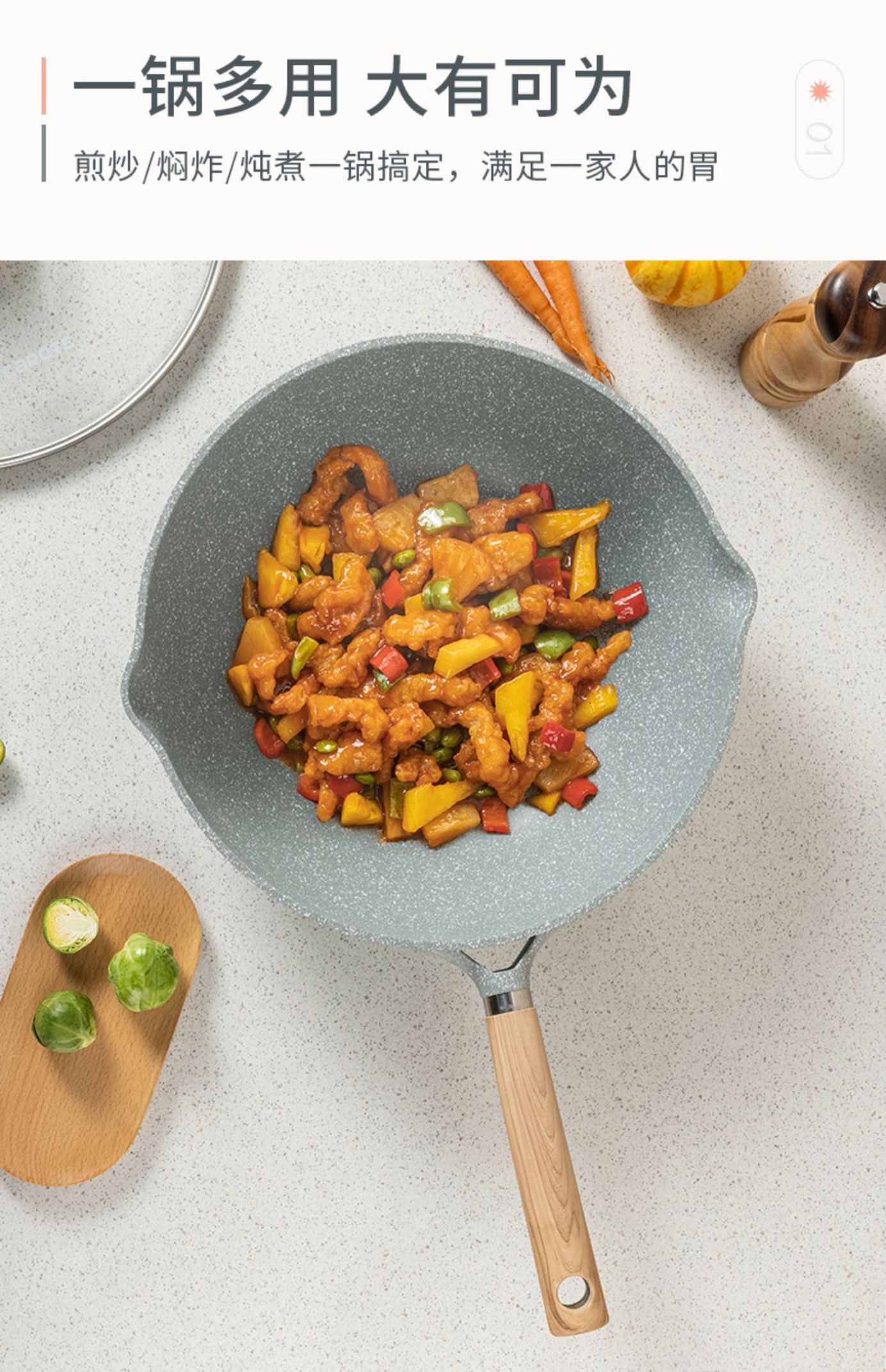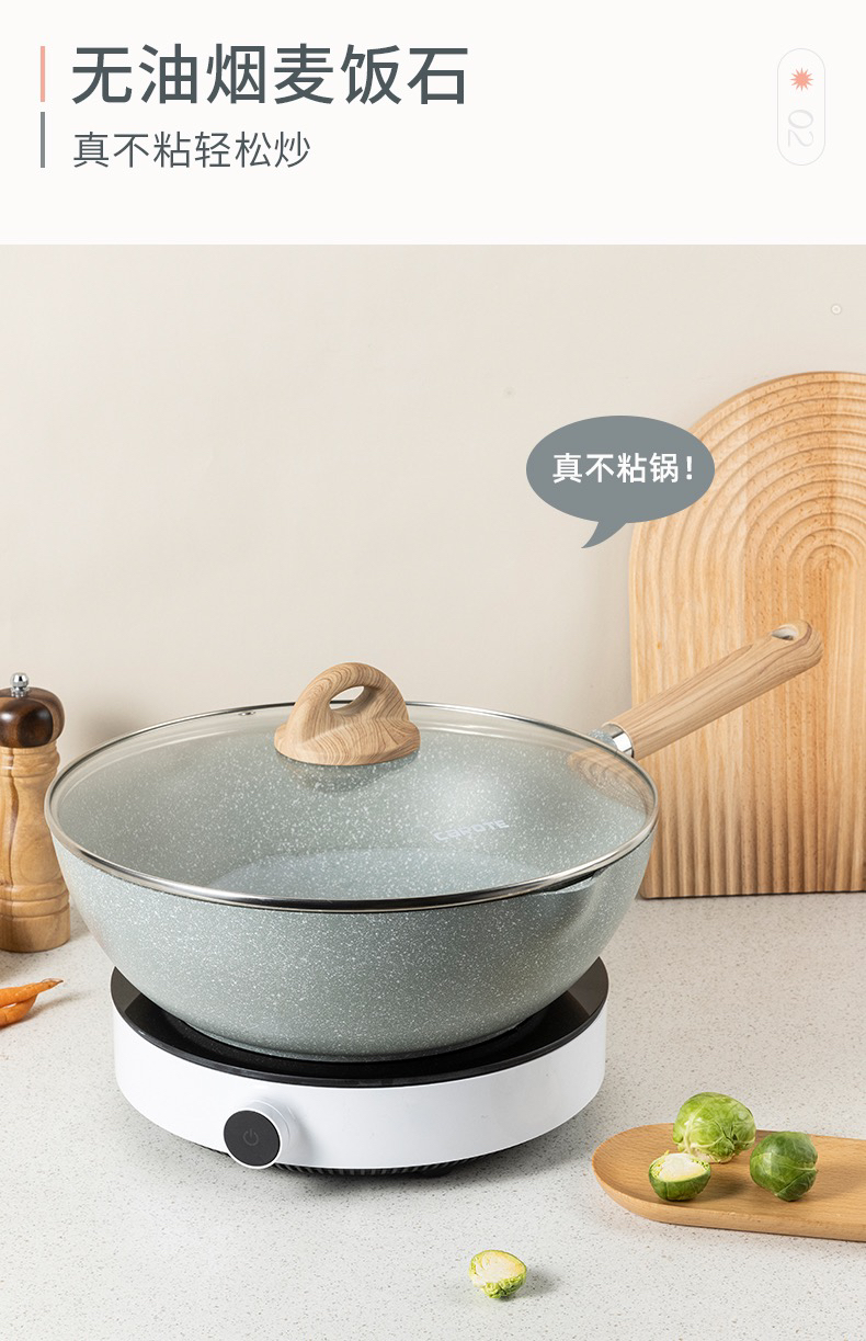 卡罗特麦饭石不粘锅炒锅家用炒菜锅无油烟平底锅电磁炉燃气灶专用