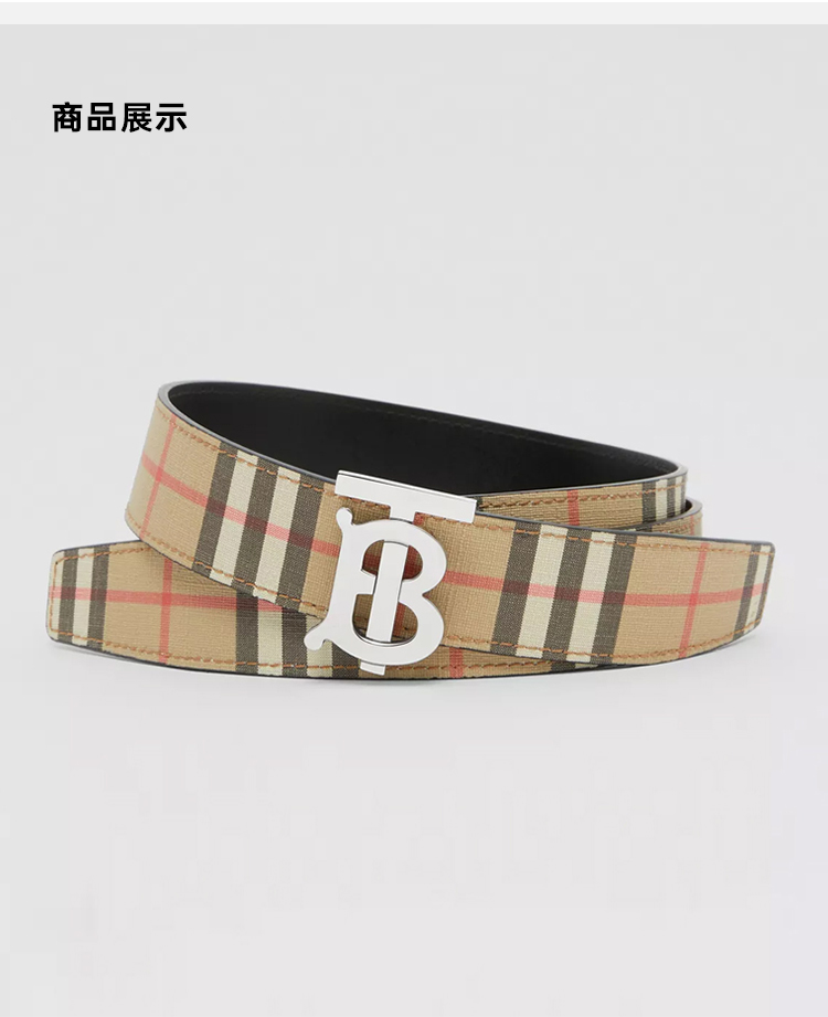 【一】BURBERRY 巴宝莉 男士双面 Monogram Motif Vintage 格纹TB专属标识腰带 格子 8052779 A7026