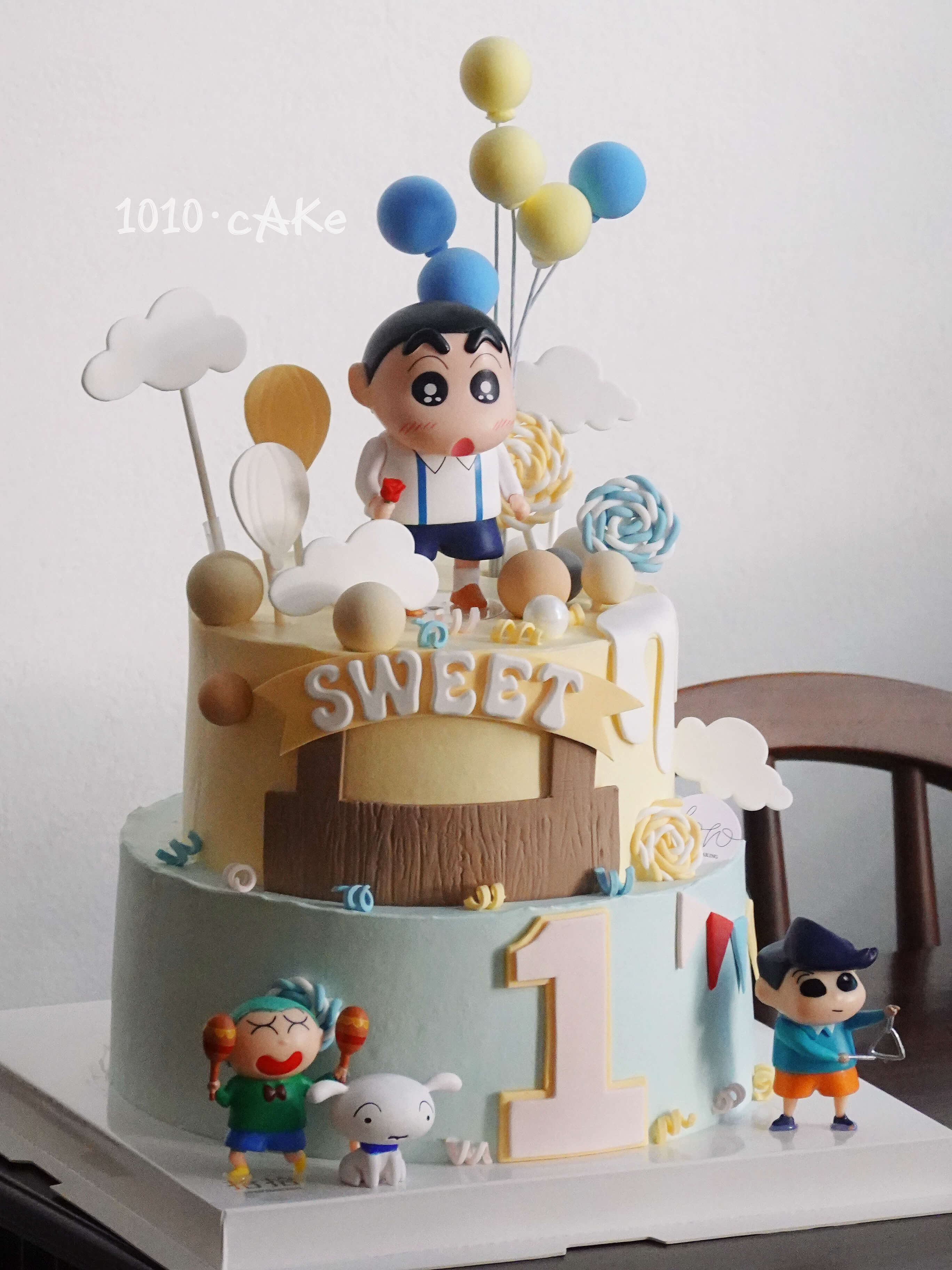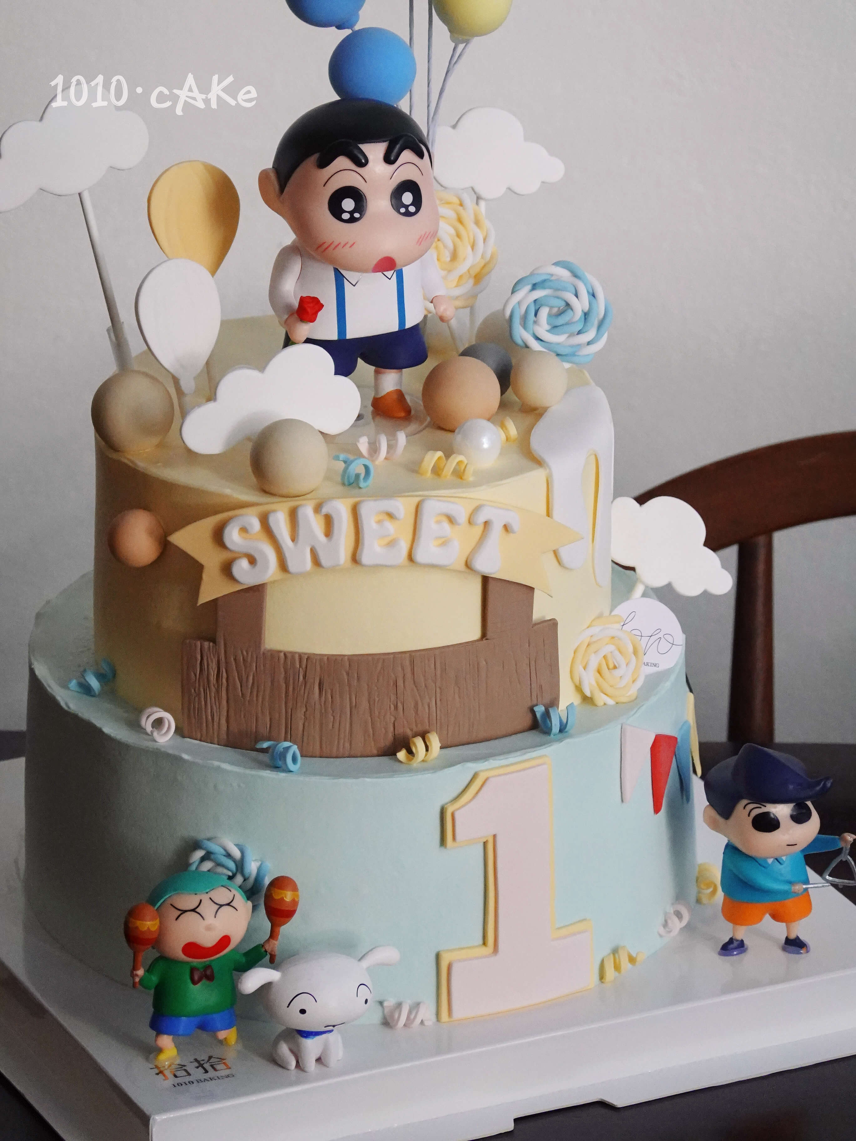 「蜡笔小新·陪你过生日」岁数可改·翻糖巧克力·100%动物奶油(附图6+8寸双层·提前7天预订)