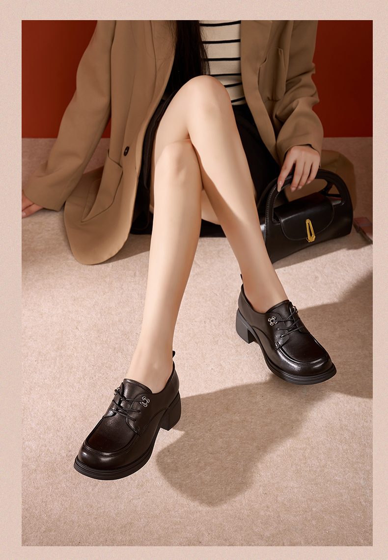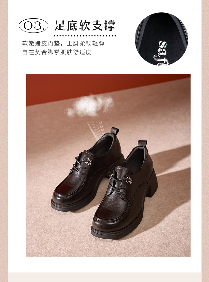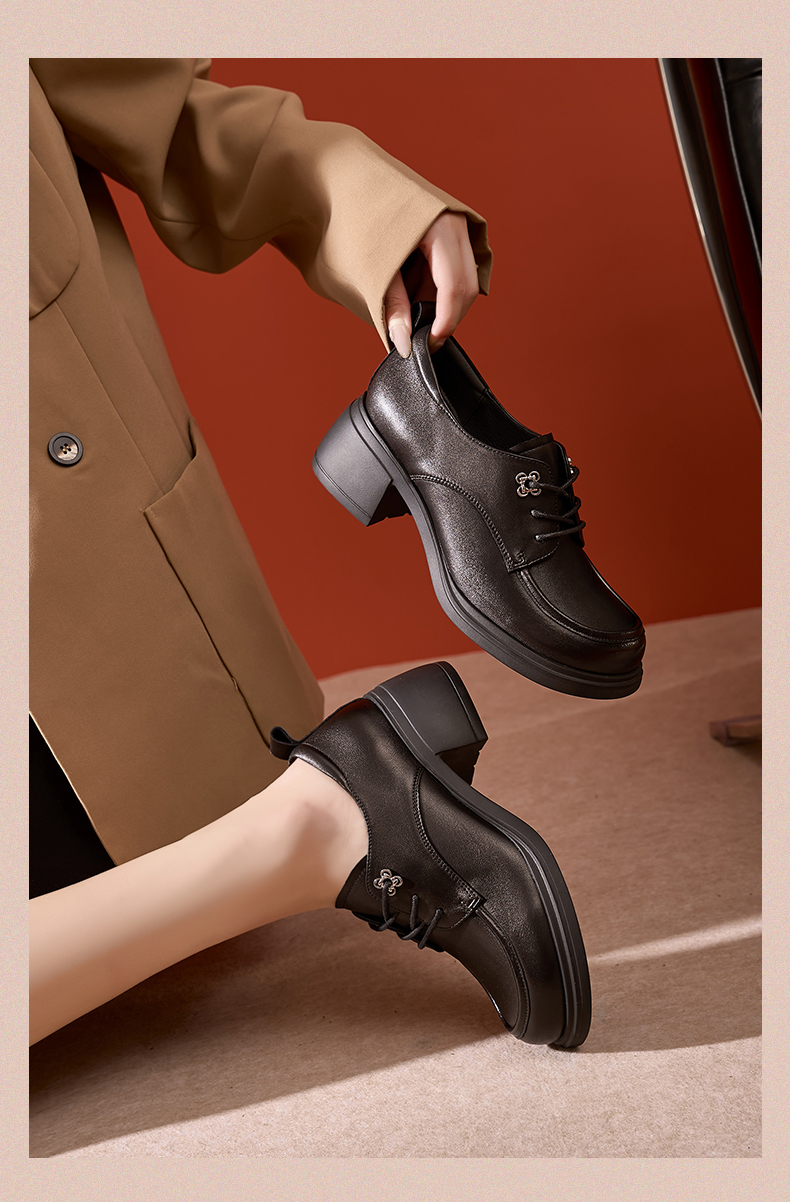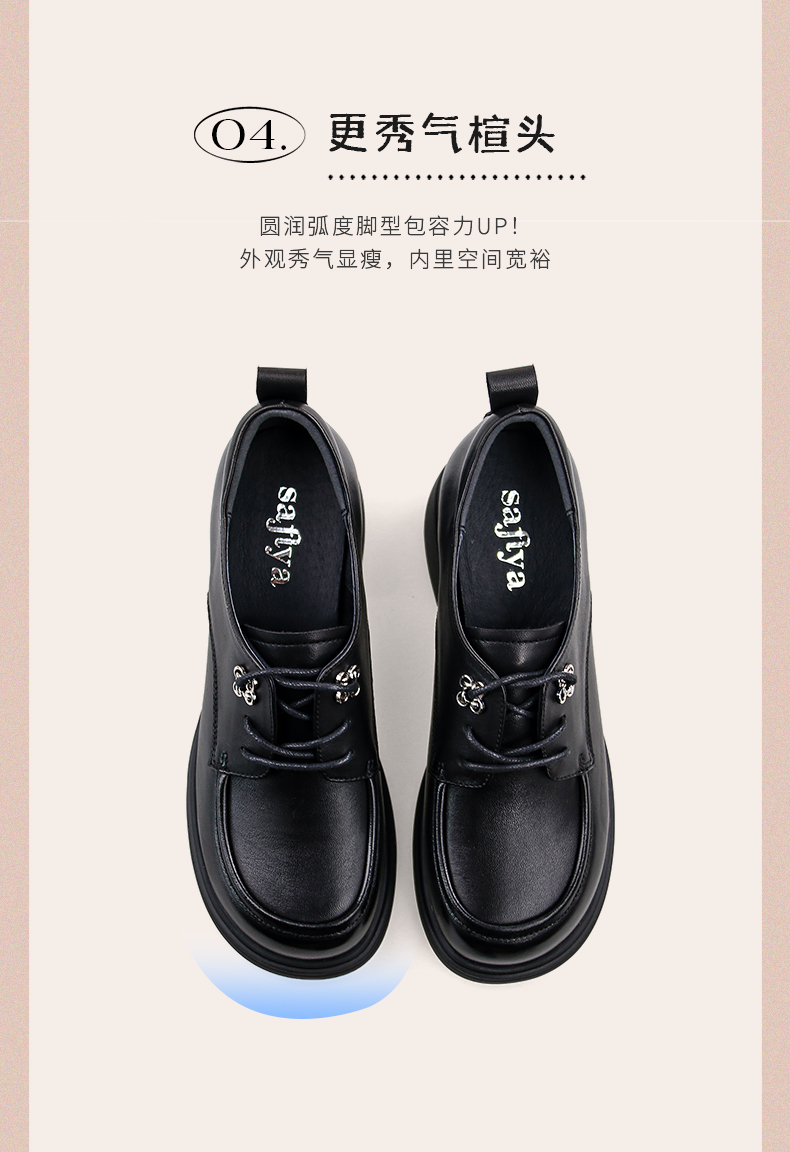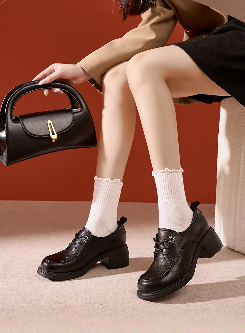 Safiya/索菲娅2024秋英伦风真皮粗跟百搭厚底系带深口通勤小皮鞋 SF43112127/SFD3112M27