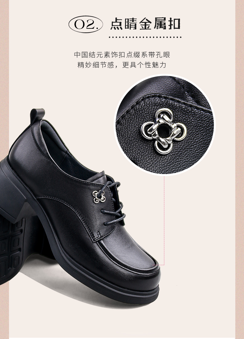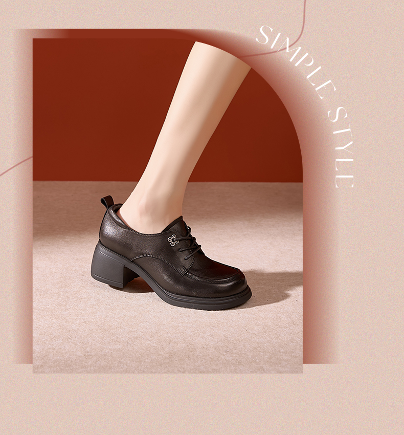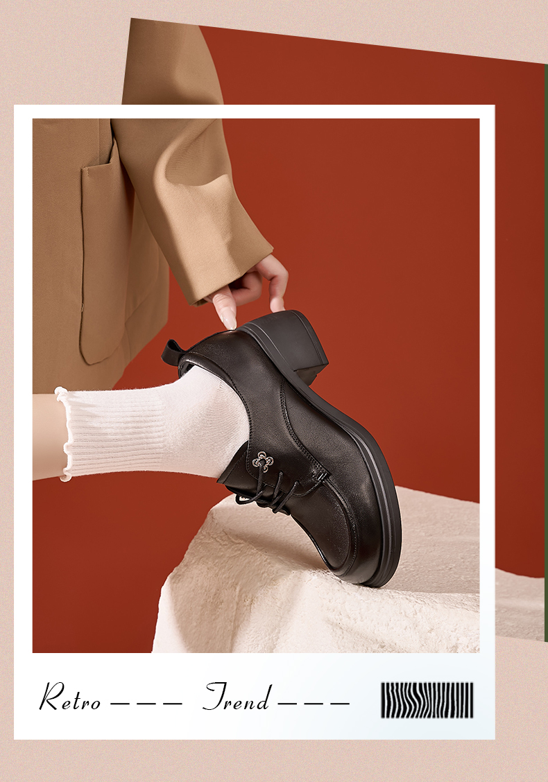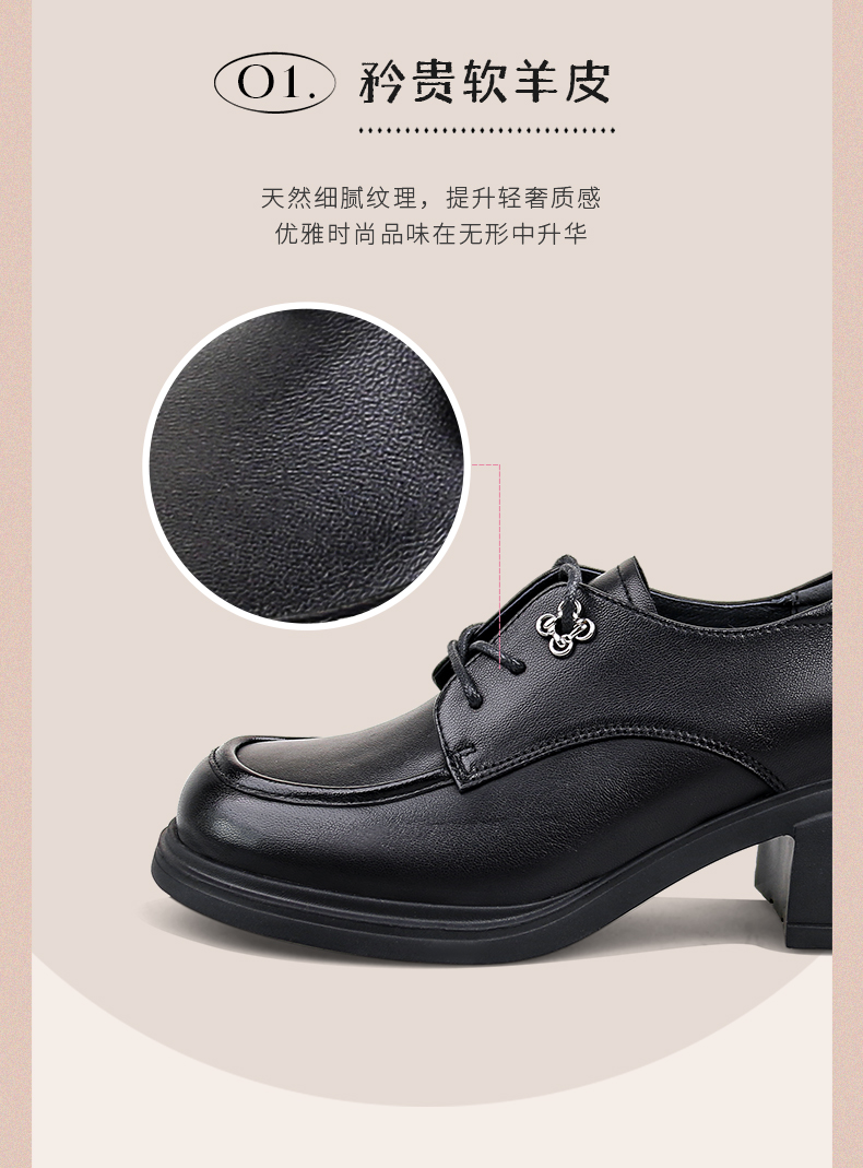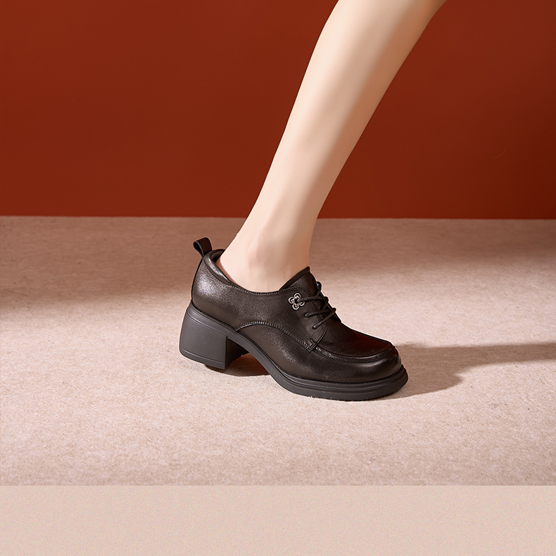 Safiya/索菲娅2024秋英伦风真皮粗跟百搭厚底系带深口通勤小皮鞋 SF43112127/SFD3112M27