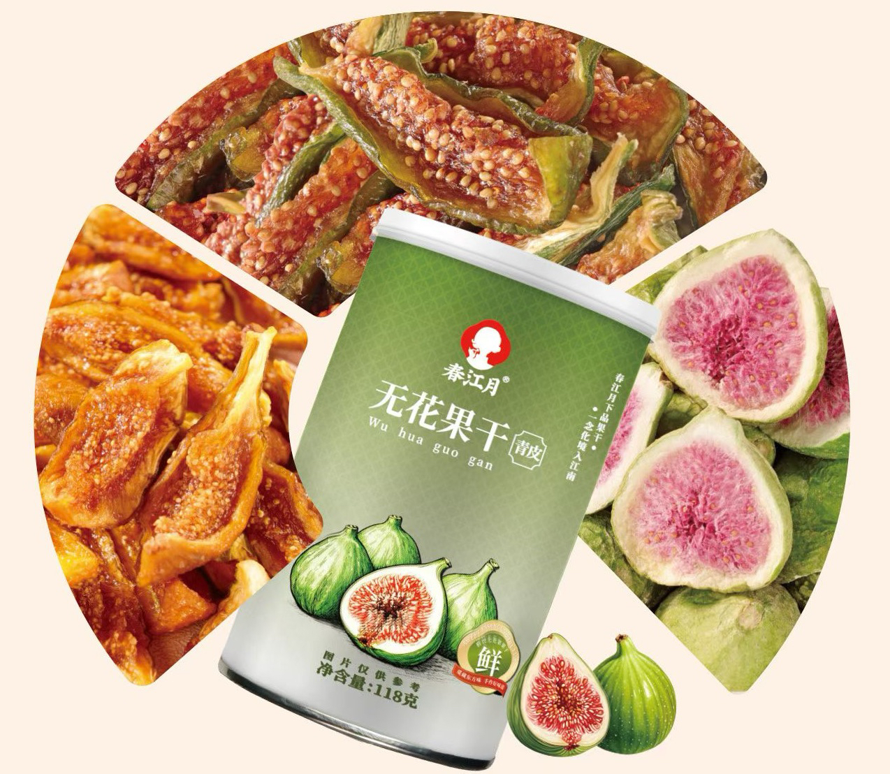 董洁推荐【春江月・青皮无花果干】古法原切自然晒干,非烘干工艺,口感软糯不干硬~ 118g/罐
