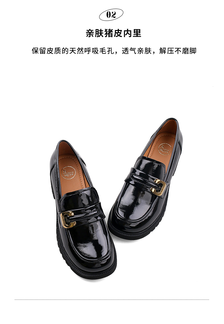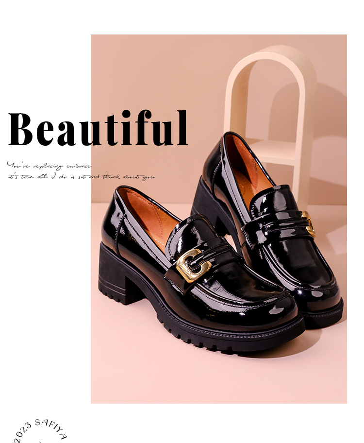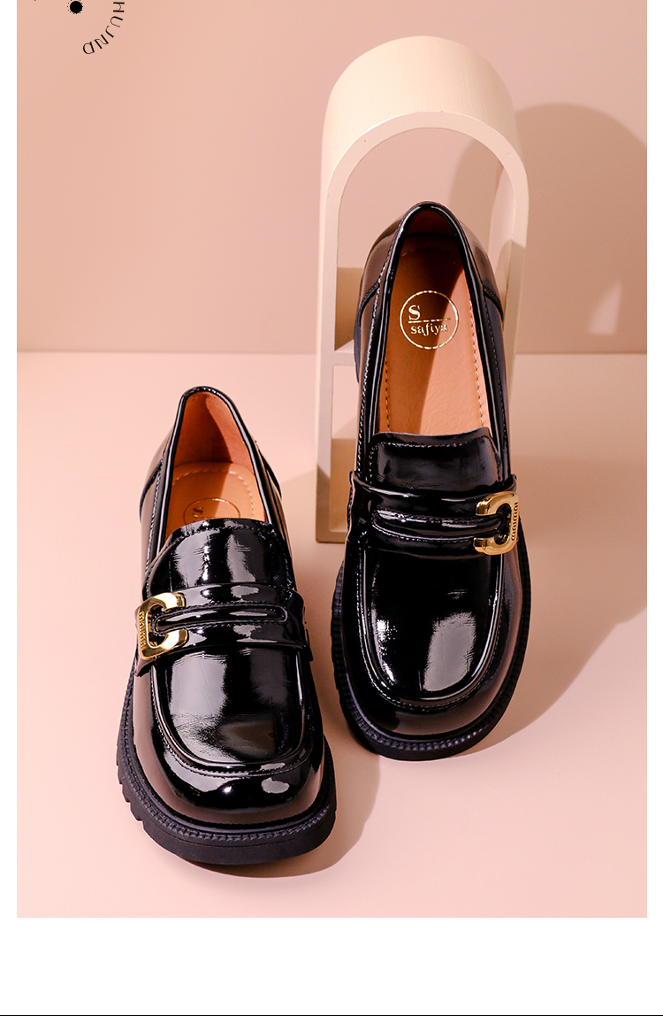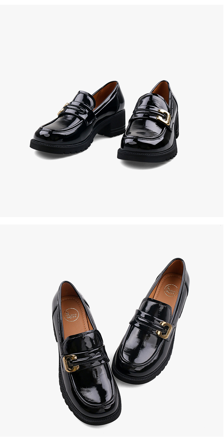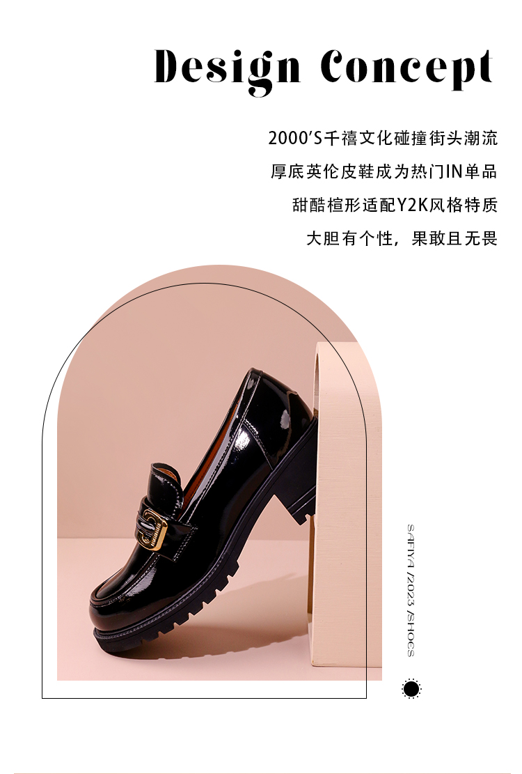 Safiya/索菲娅2023秋季新品英伦漆皮粗跟百搭一脚蹬深口皮鞋厚底乐福鞋SF33112007