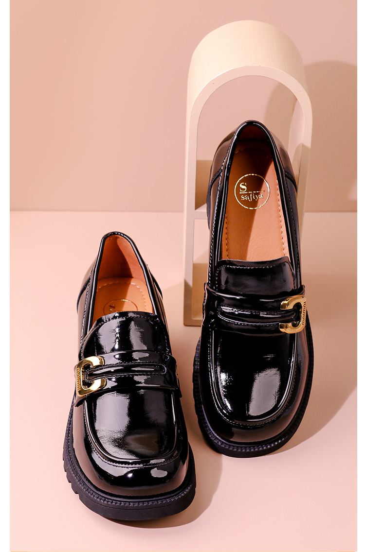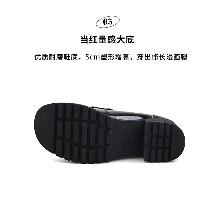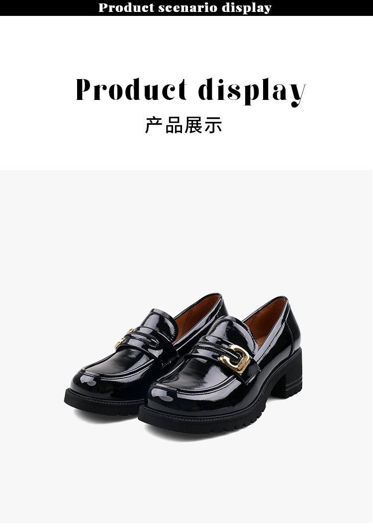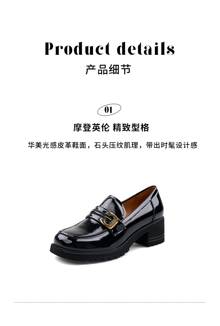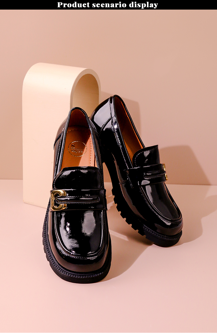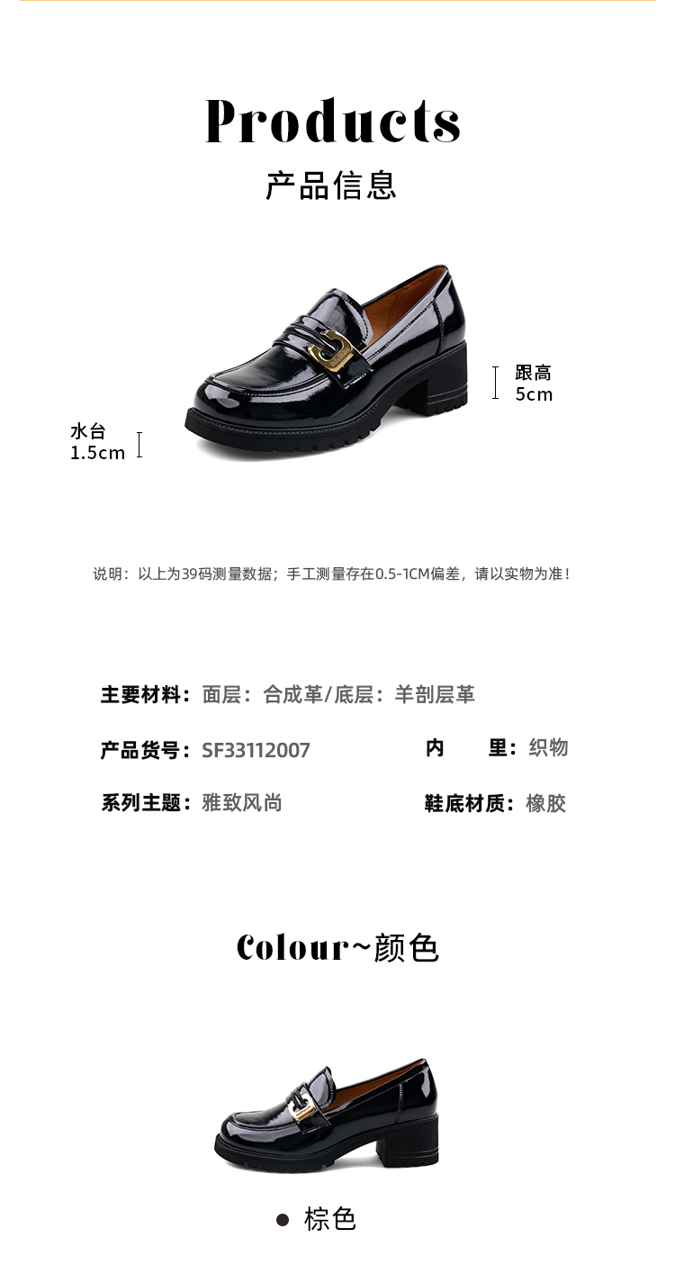 Safiya/索菲娅2023秋季新品英伦漆皮粗跟百搭一脚蹬深口皮鞋厚底乐福鞋SF33112007
