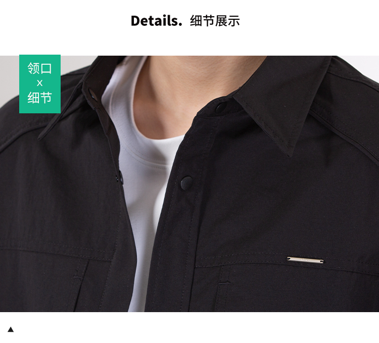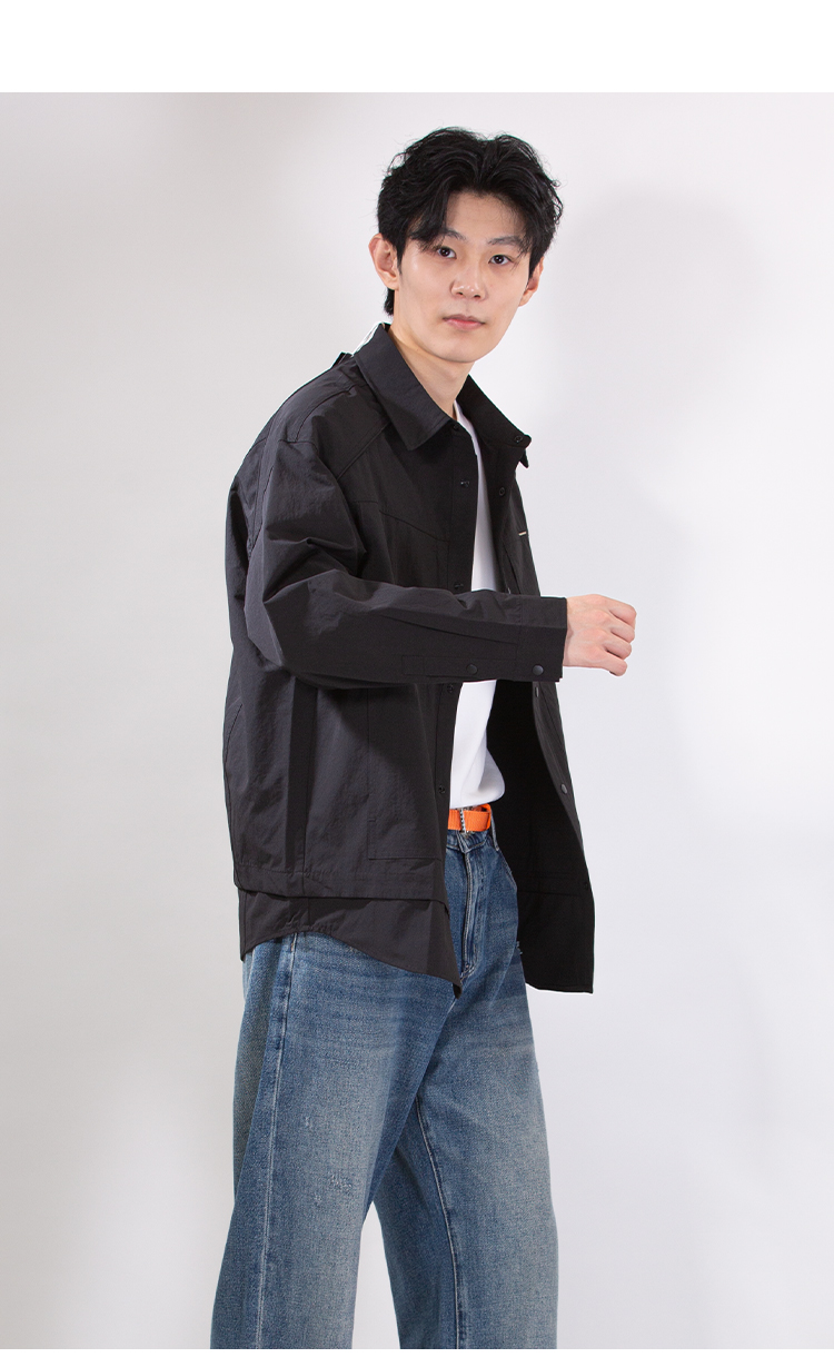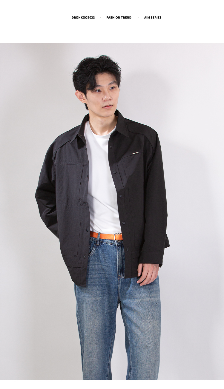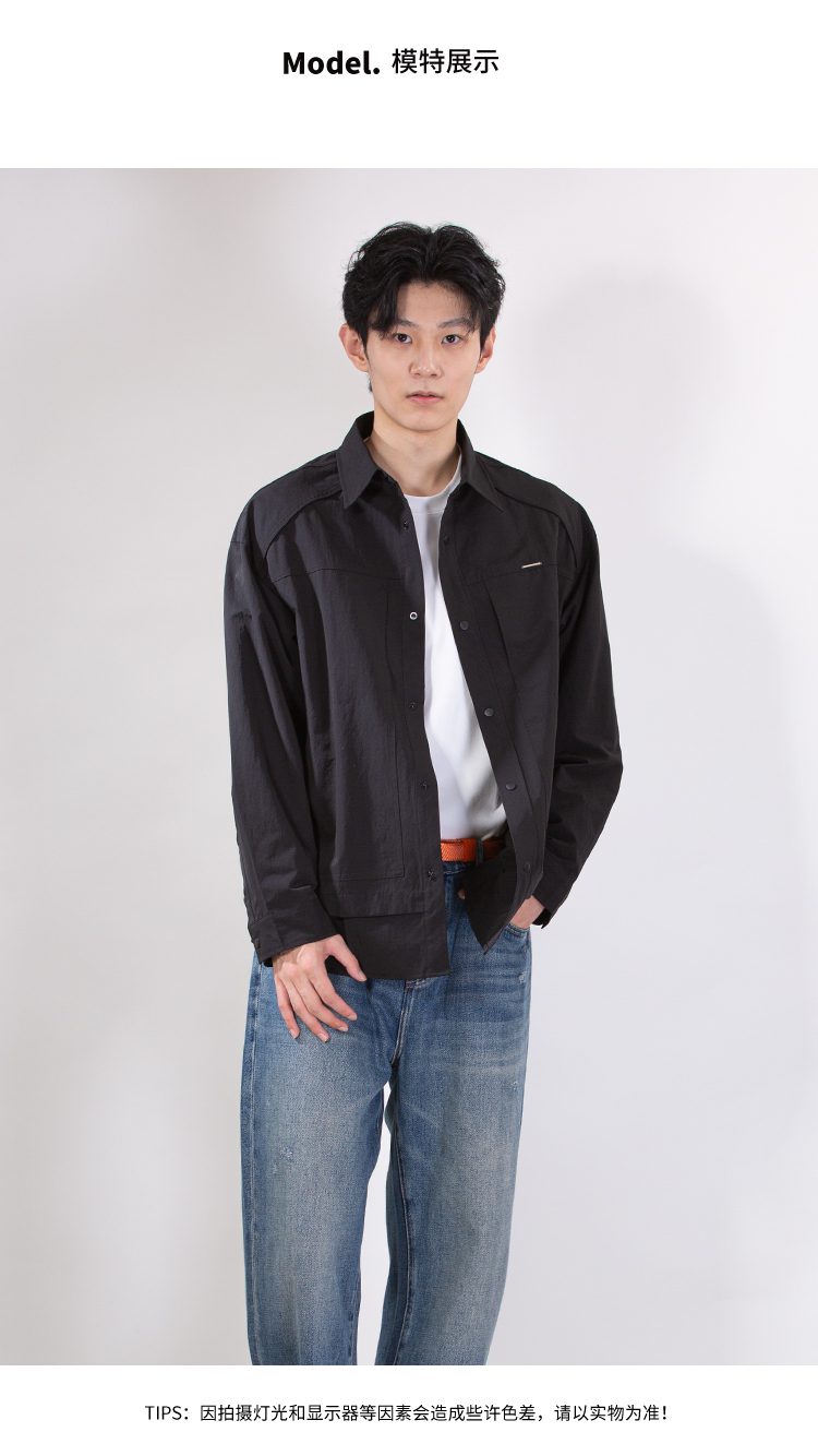 DRONKOO 2025 翻领左金属标前贴袋下摆假两件微阔长袖中厚衬衣