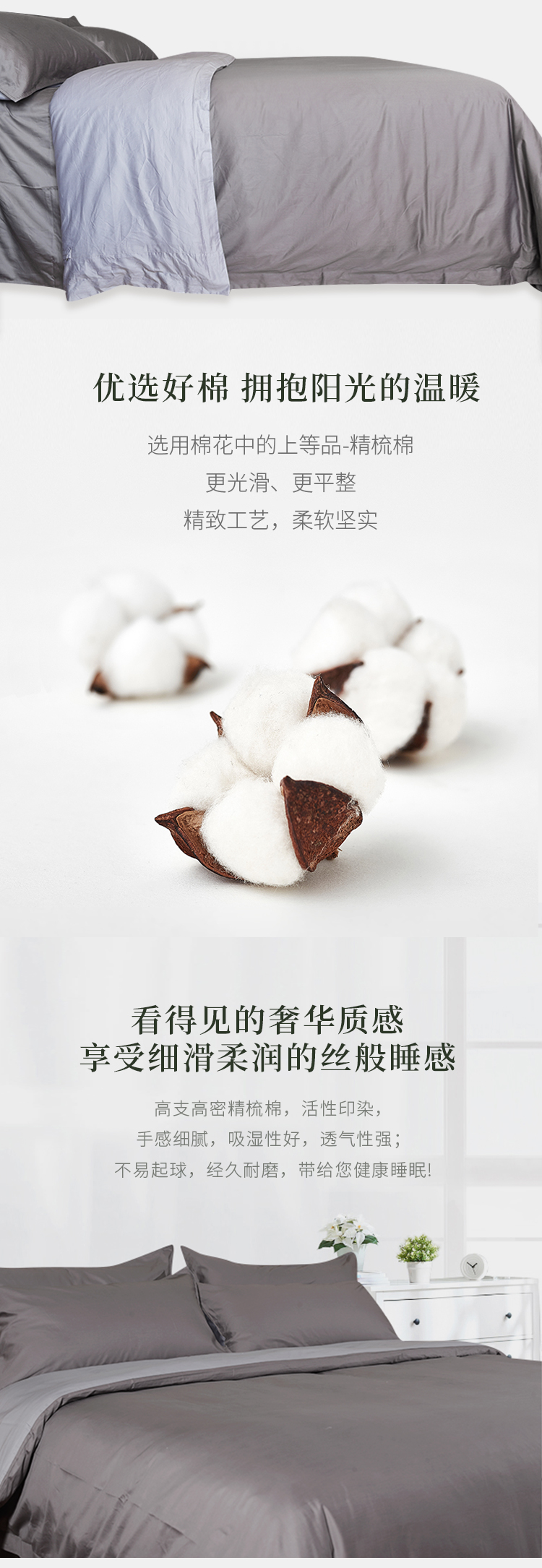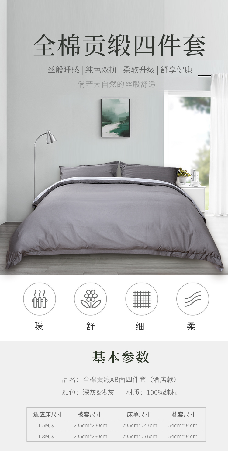 维也纳定制 | 全棉贡缎四件套 精舒棉 AB面 灰色(尺寸可选)