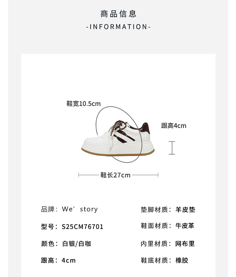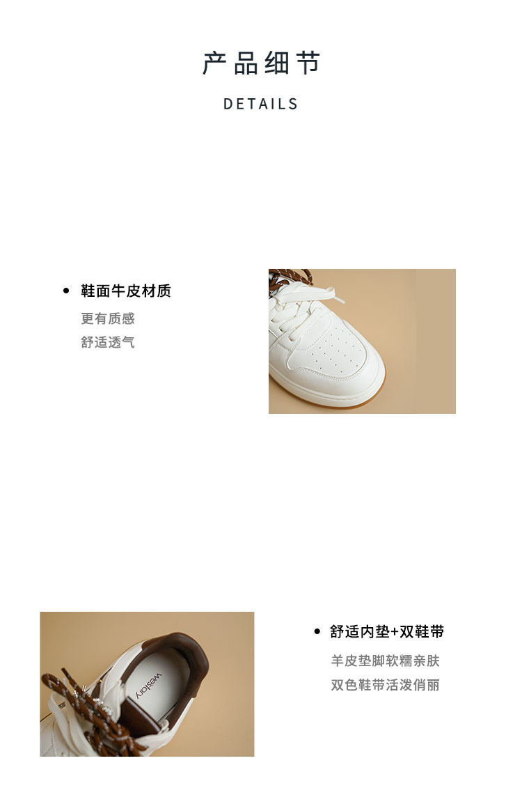 Westory2025年秋季厚底运动鞋小白鞋双色鞋带深口板鞋S25CM76701(8月22日发货)