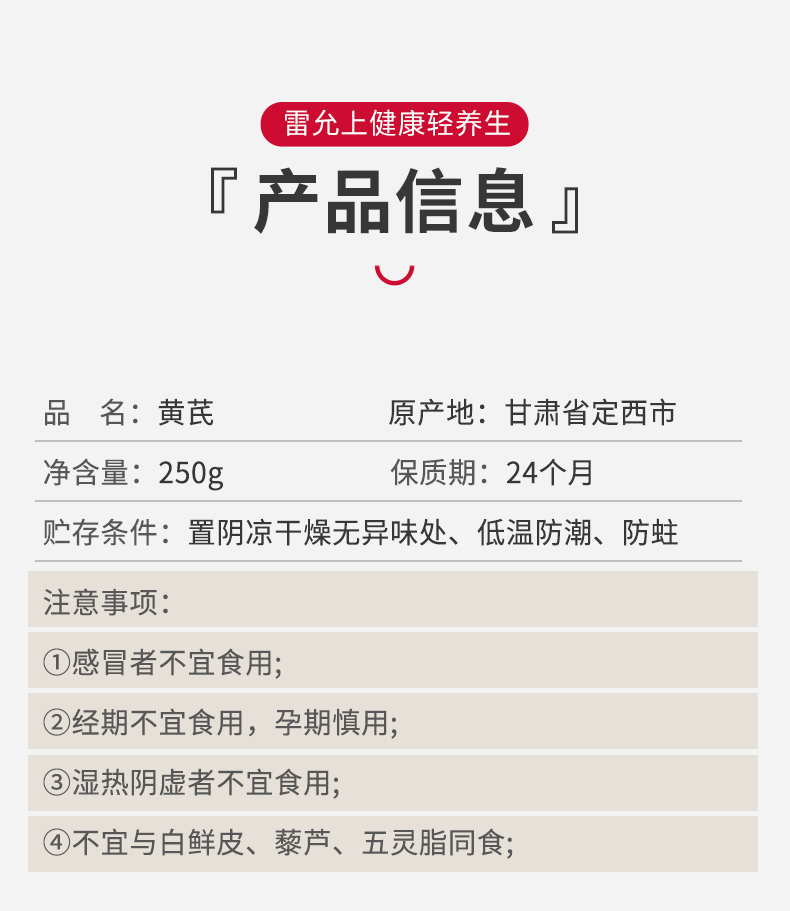 雷允上 黄芪250g/罐 低温烘干不伤养分 甘肃原产 可泡水煮粥煲汤 48小时发货