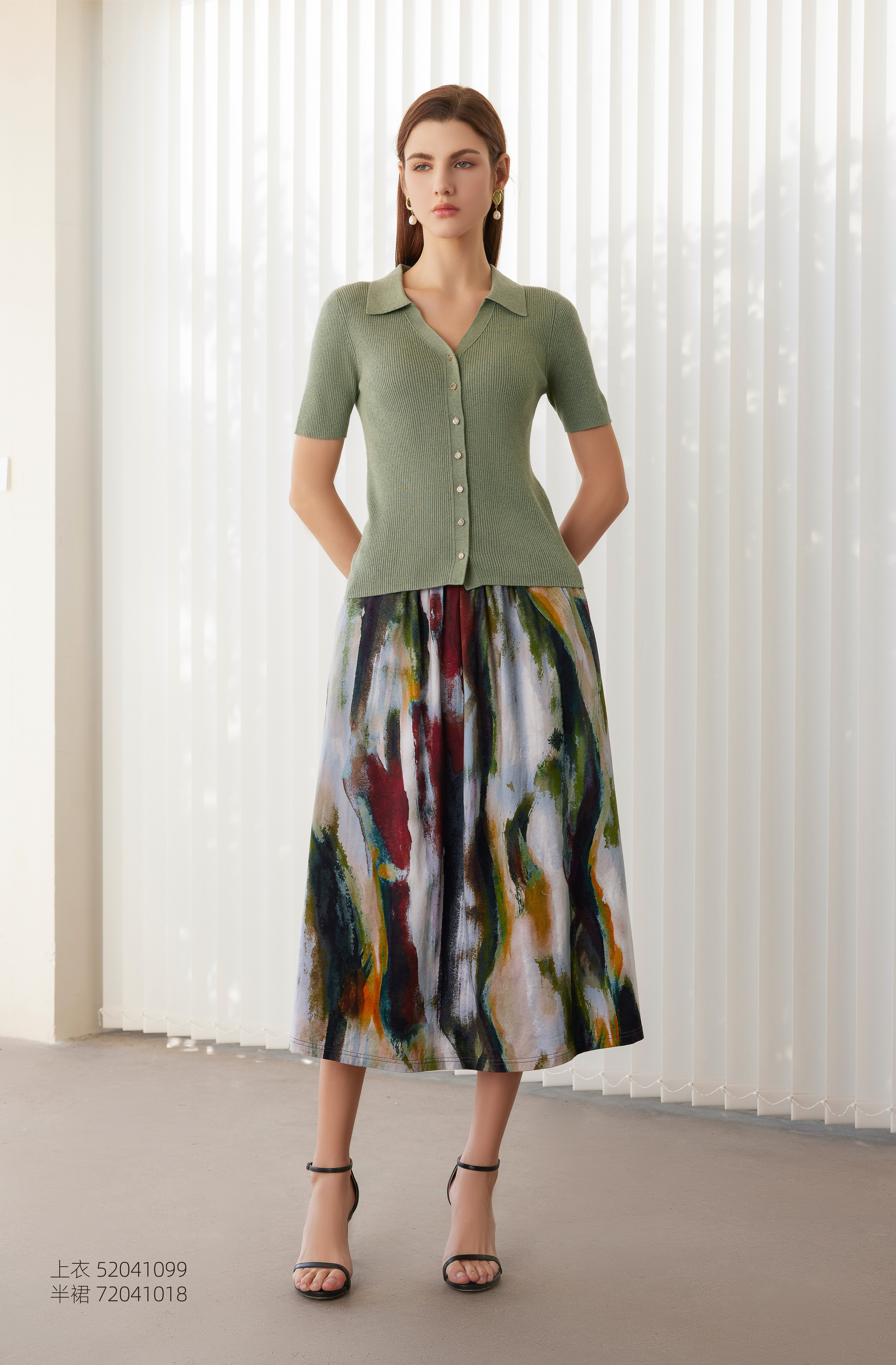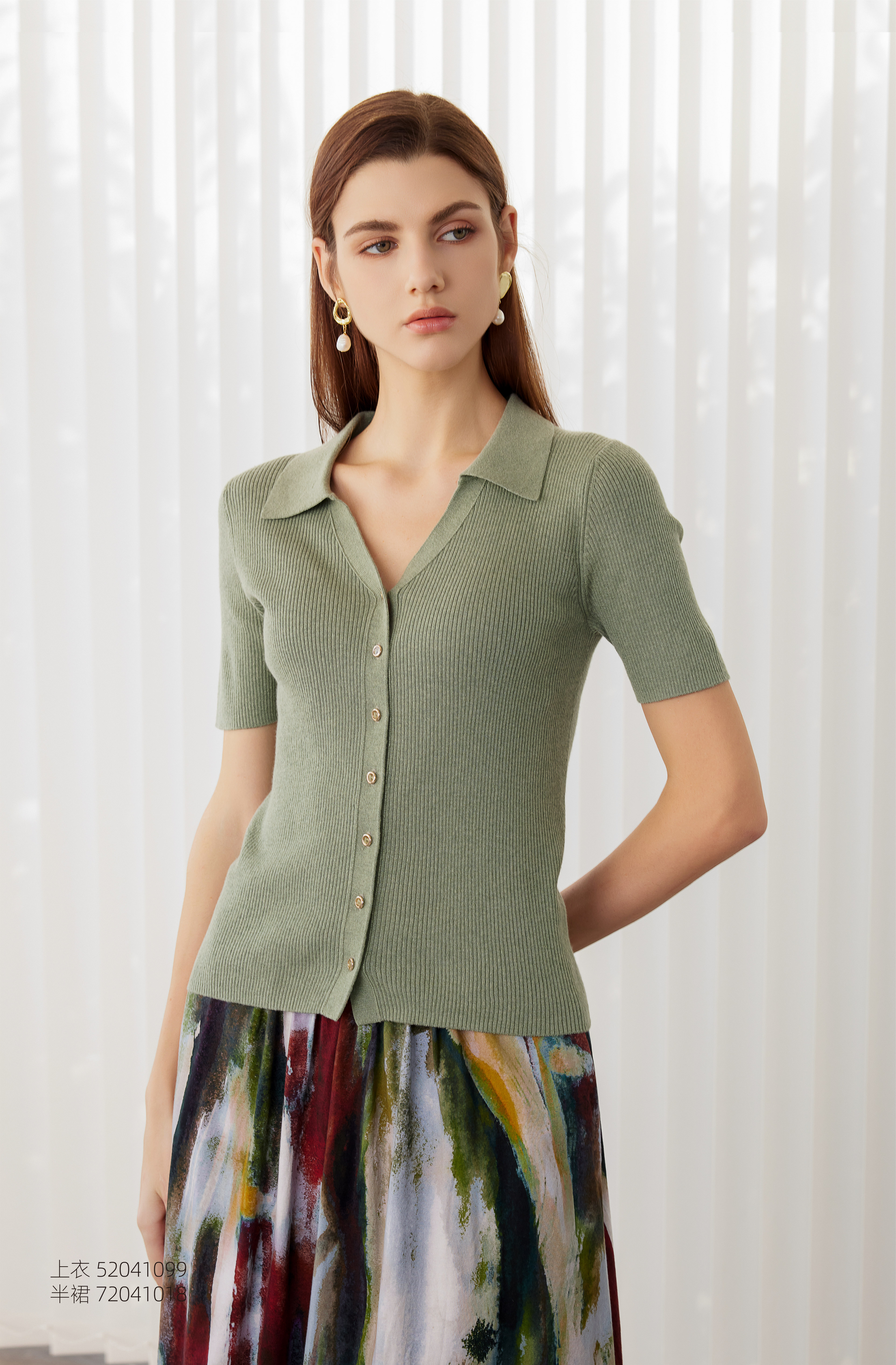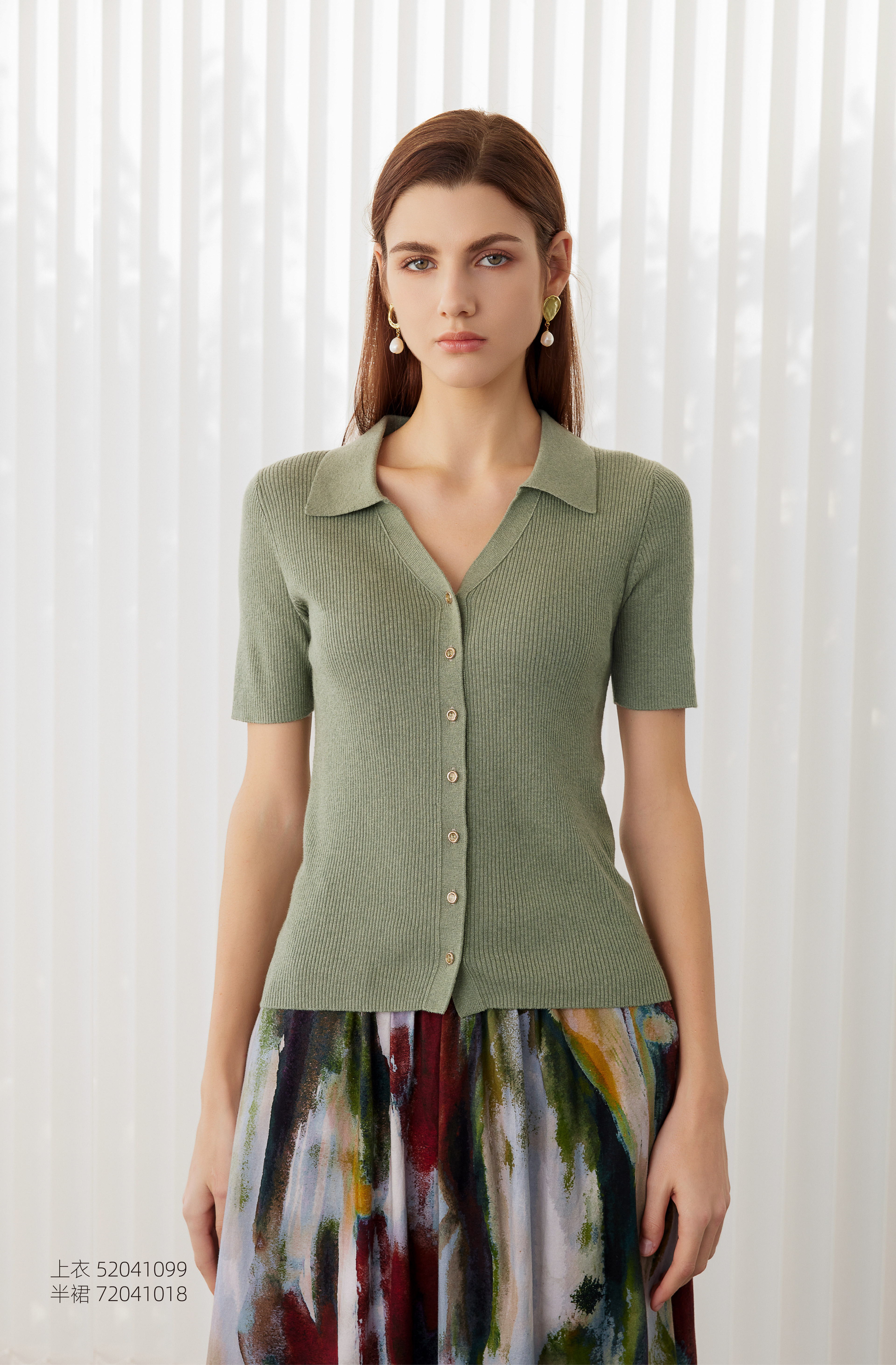 【棉丝麻混纺针织上衣】25年夏季新品女士V领短袖上衣薄款舒适毛衣