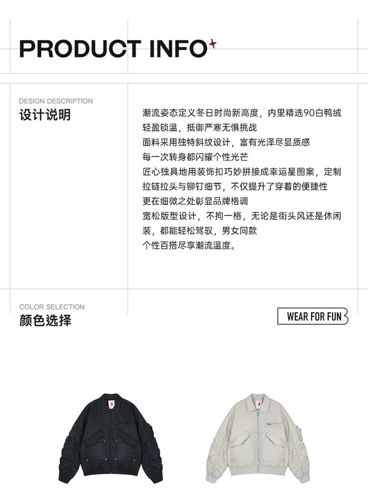BJHG不计后果夹克羽绒服男款冬季潮牌2024新款90白鸭绒设计感外套