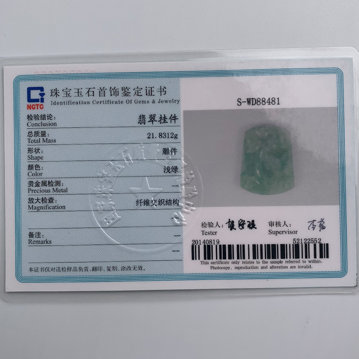 派瑞翡翠 翡翠挂件 糯种 淡绿色
