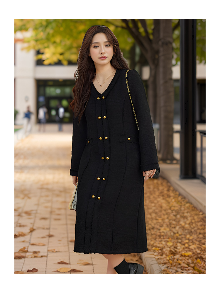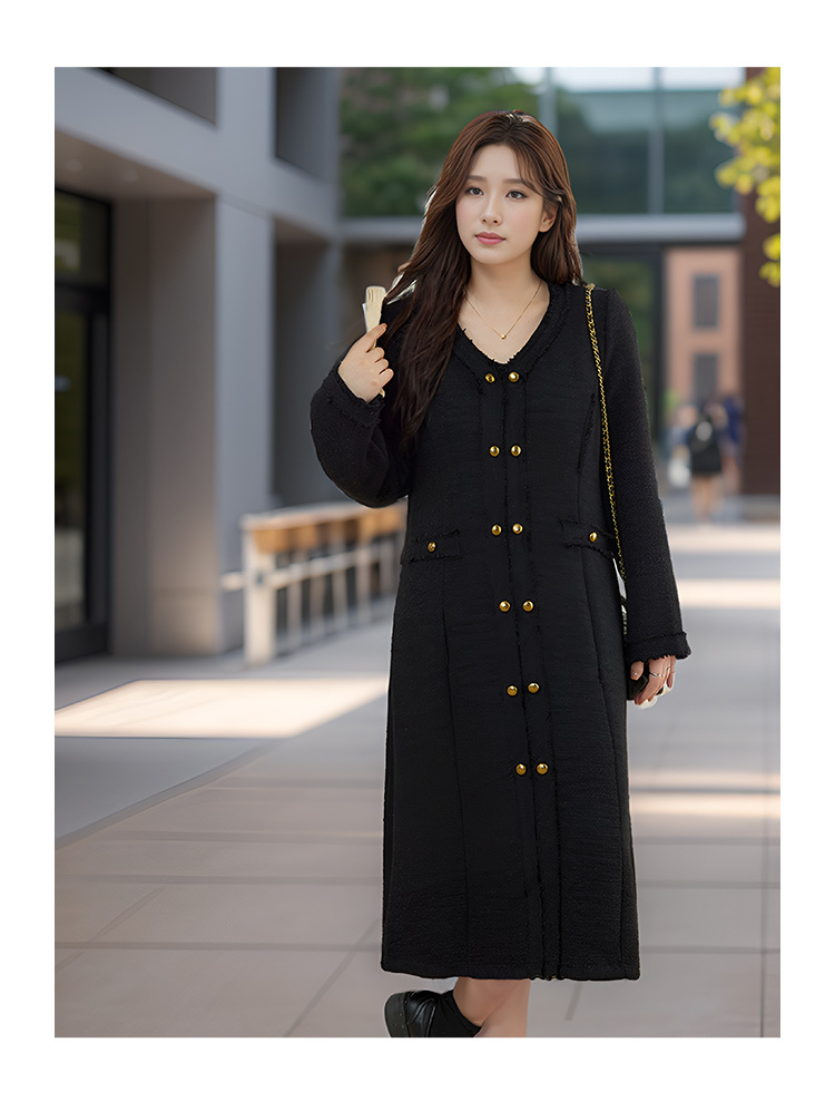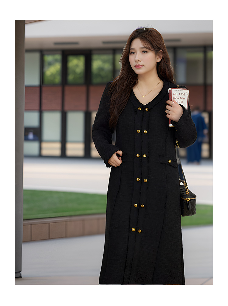 9/9奢姿大码女装2024秋季气质V领小香风裙子胖妹妹双排扣时尚连衣裙9943891327