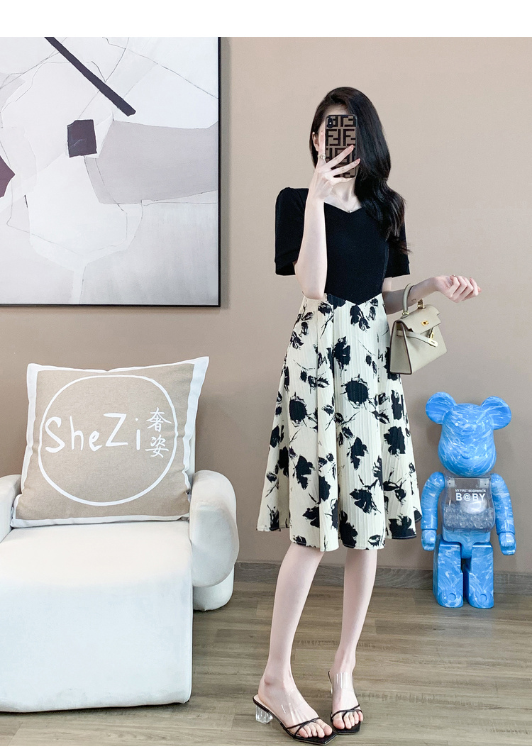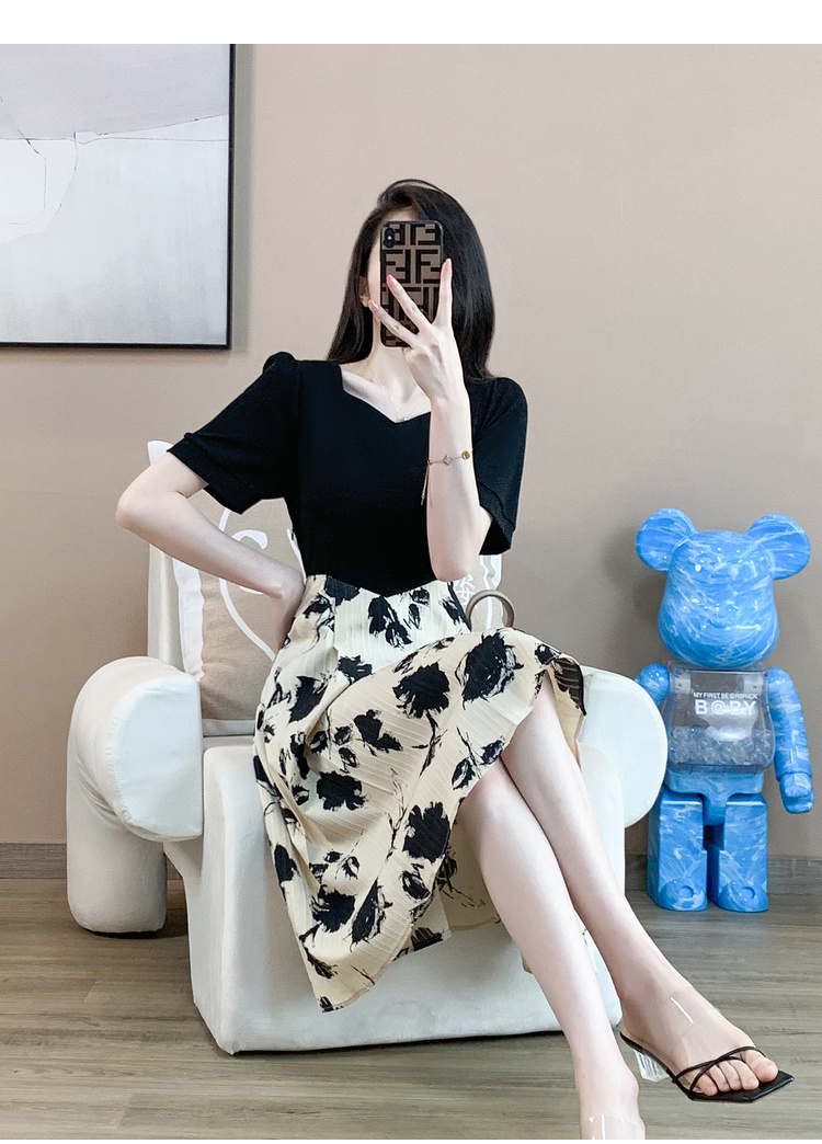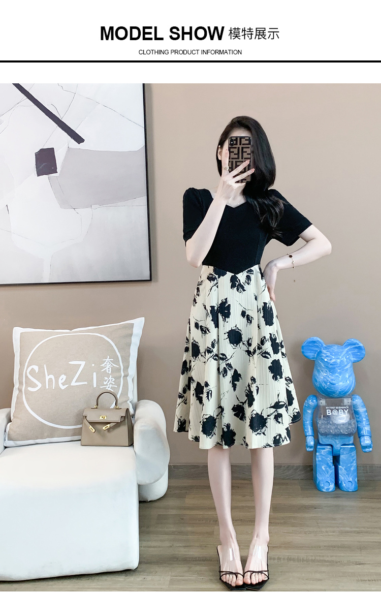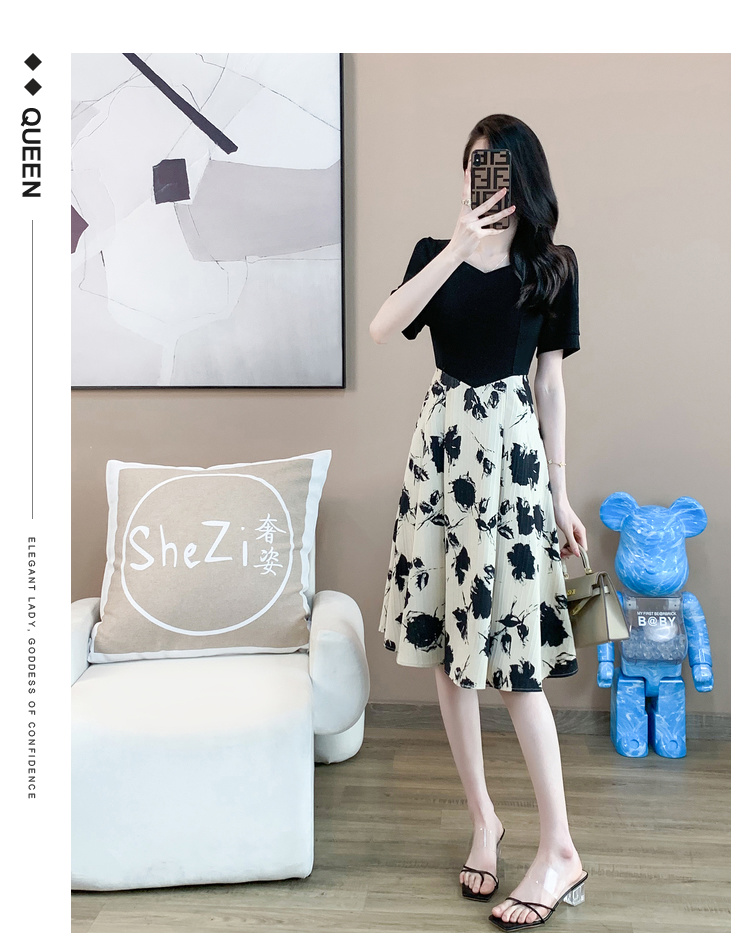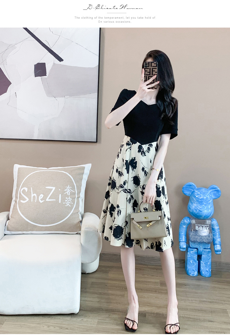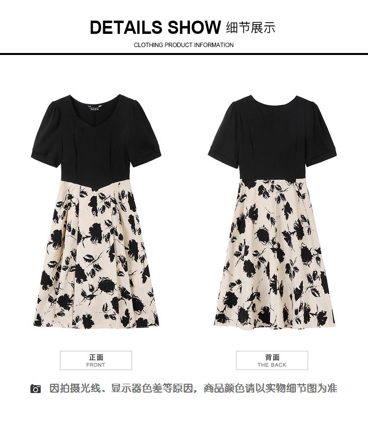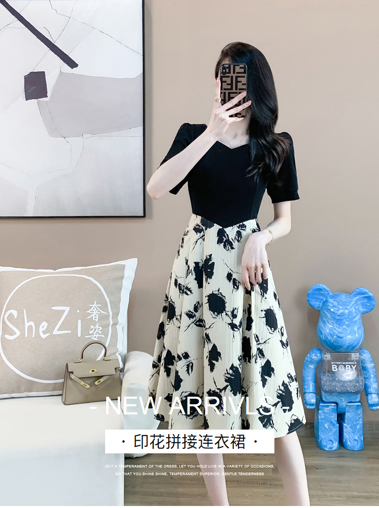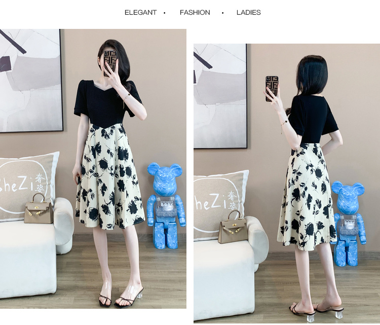 奢姿2025年夏季新款大码女装减龄印花拼接裙子胖妹妹方领连衣裙9932852792