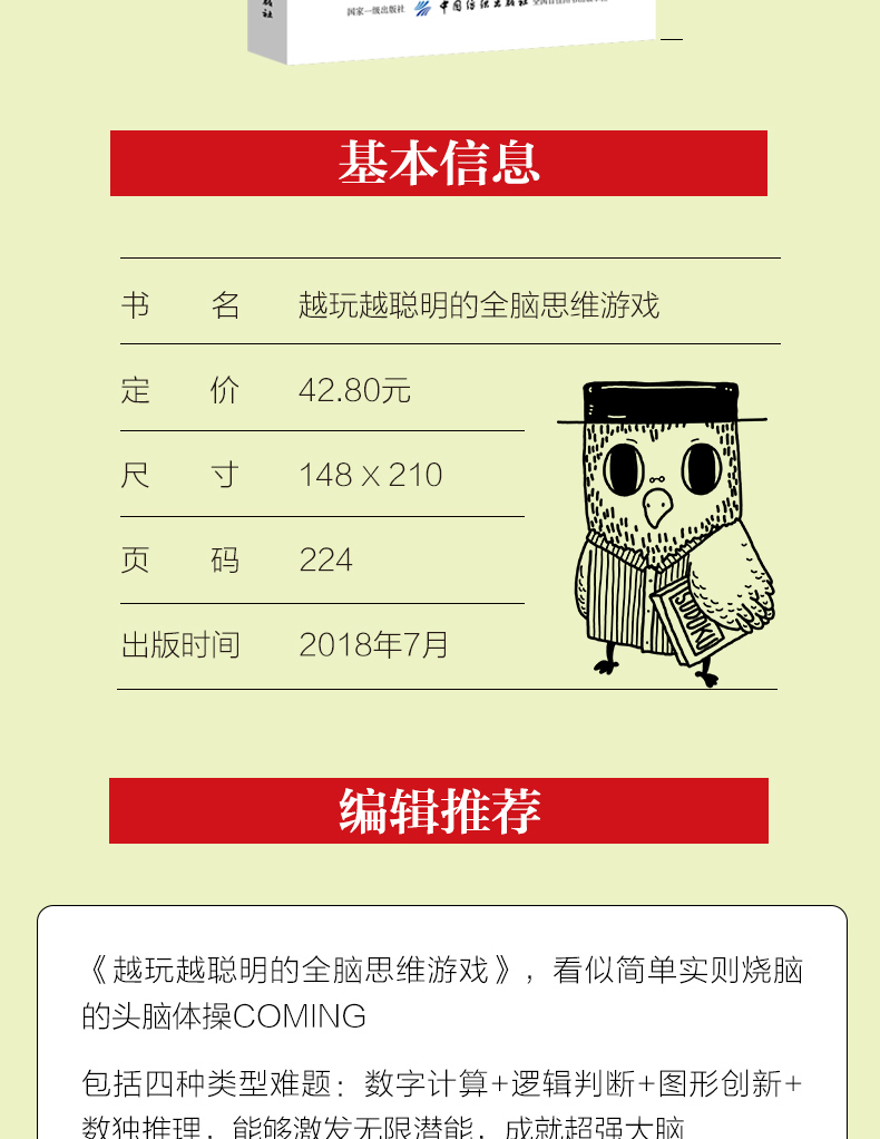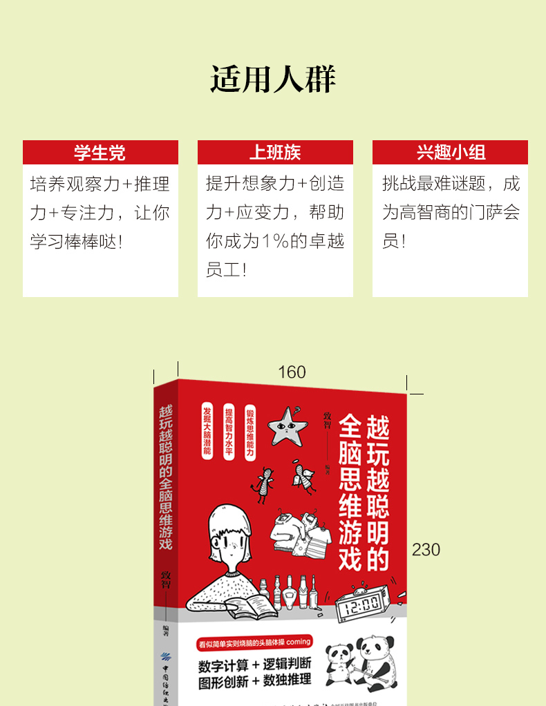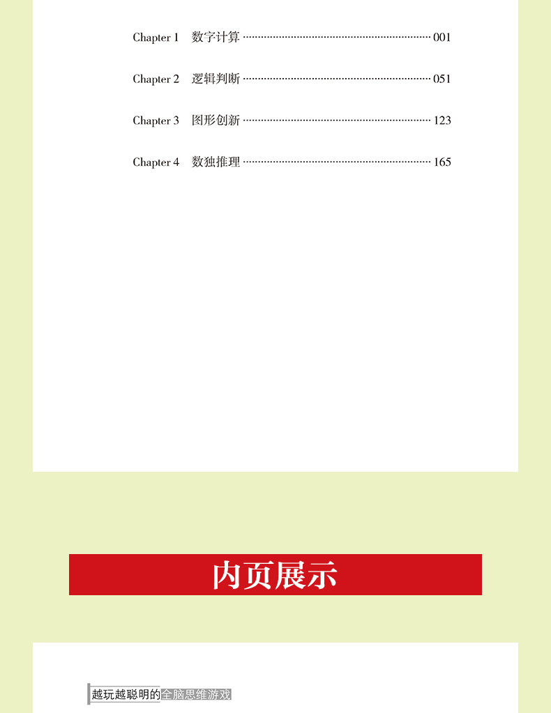 1.《越玩越聪明的全脑思维游戏》数字计算 逻辑判断 图形创新 数独推理,提升观察力 想象力 推理力 创造力 专注力 应变力,激发无限潜能,成就大脑