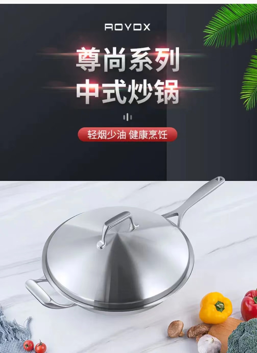 莱德斯ROYDX厨具尊尚Ⅲ系列一32cm单柄圆底胀盖中式炒锅 G12232