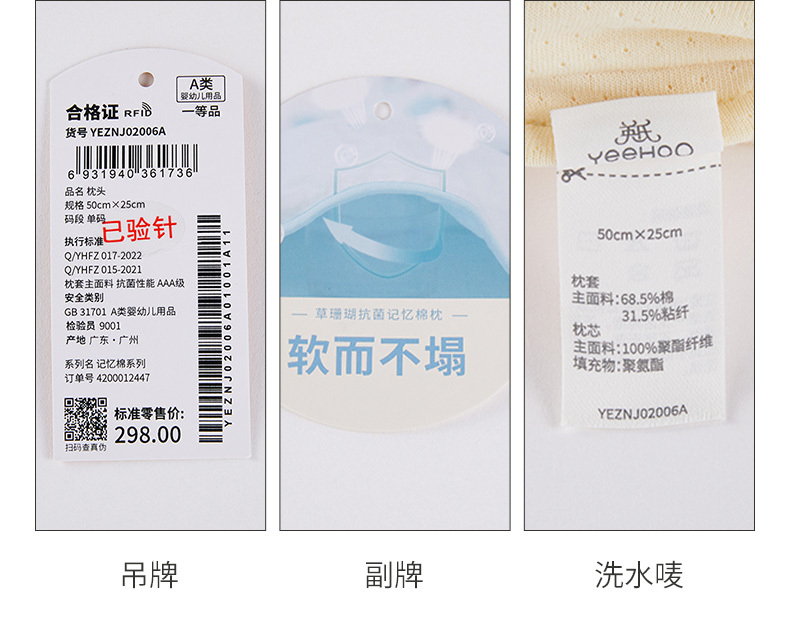 英氏宝宝抗菌儿童新款柔软舒适四季记忆枕头YEZNJ02006A