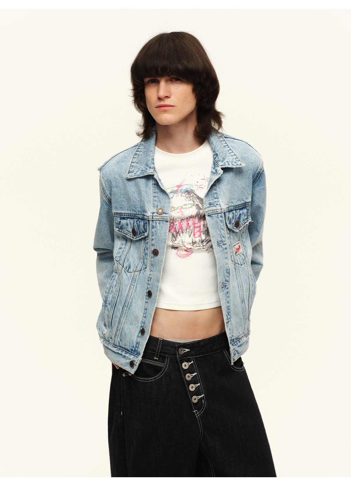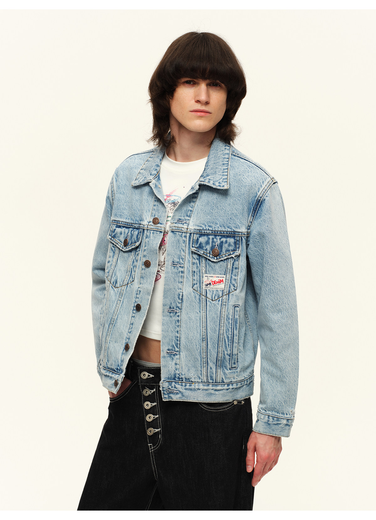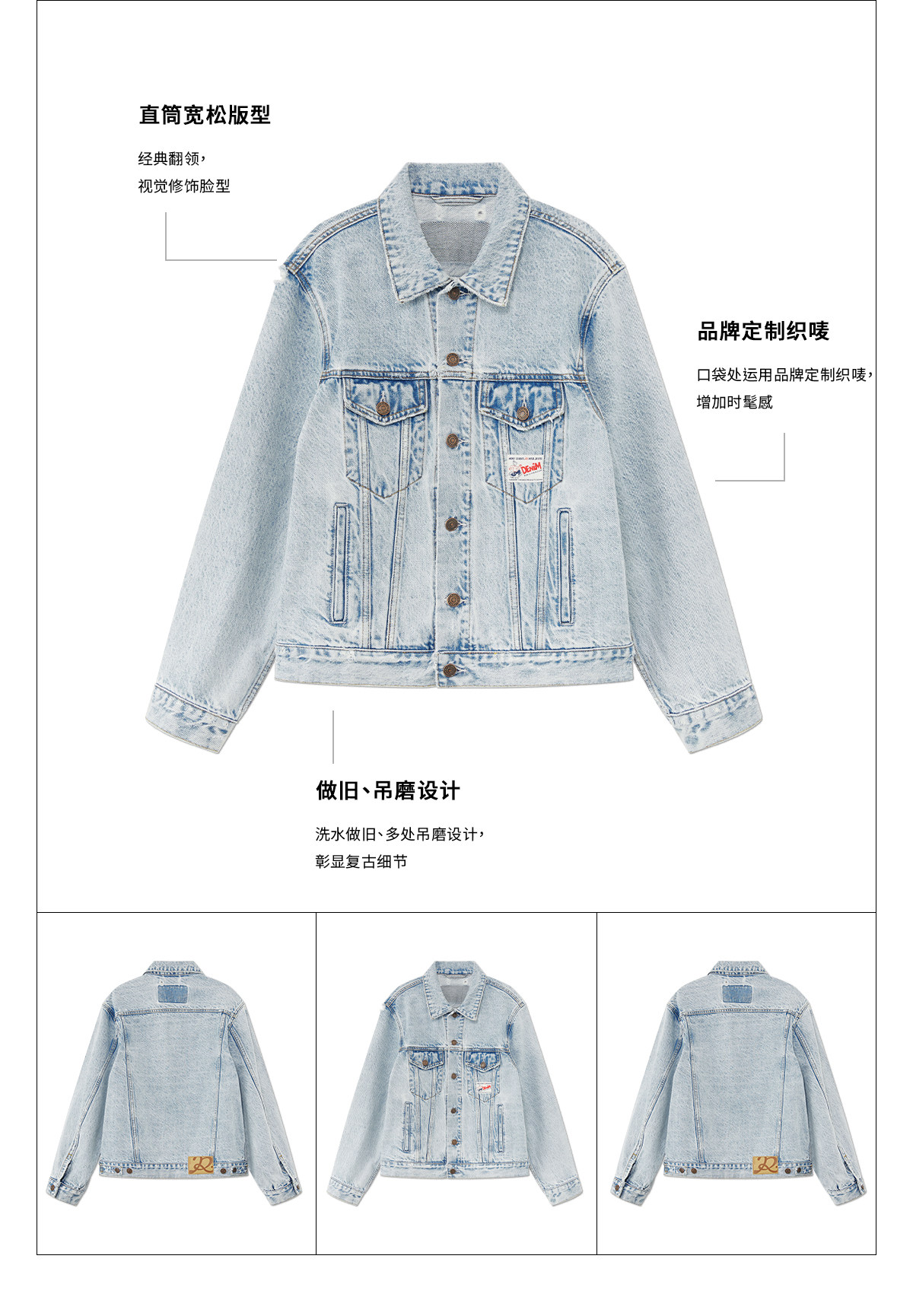 出逃赤岗西/C26SSW176/复古做旧翻领牛仔外套
