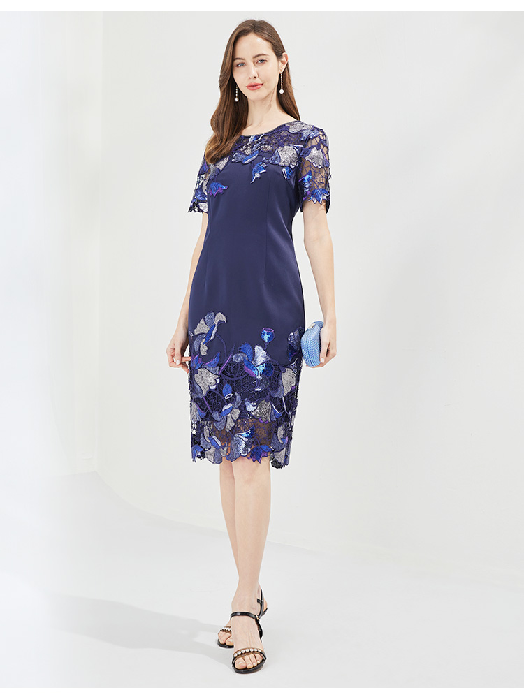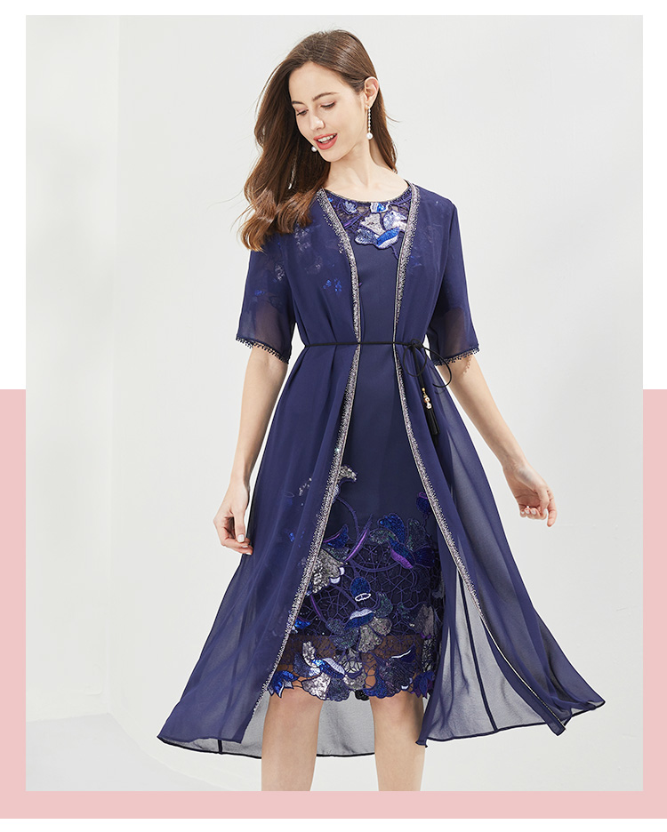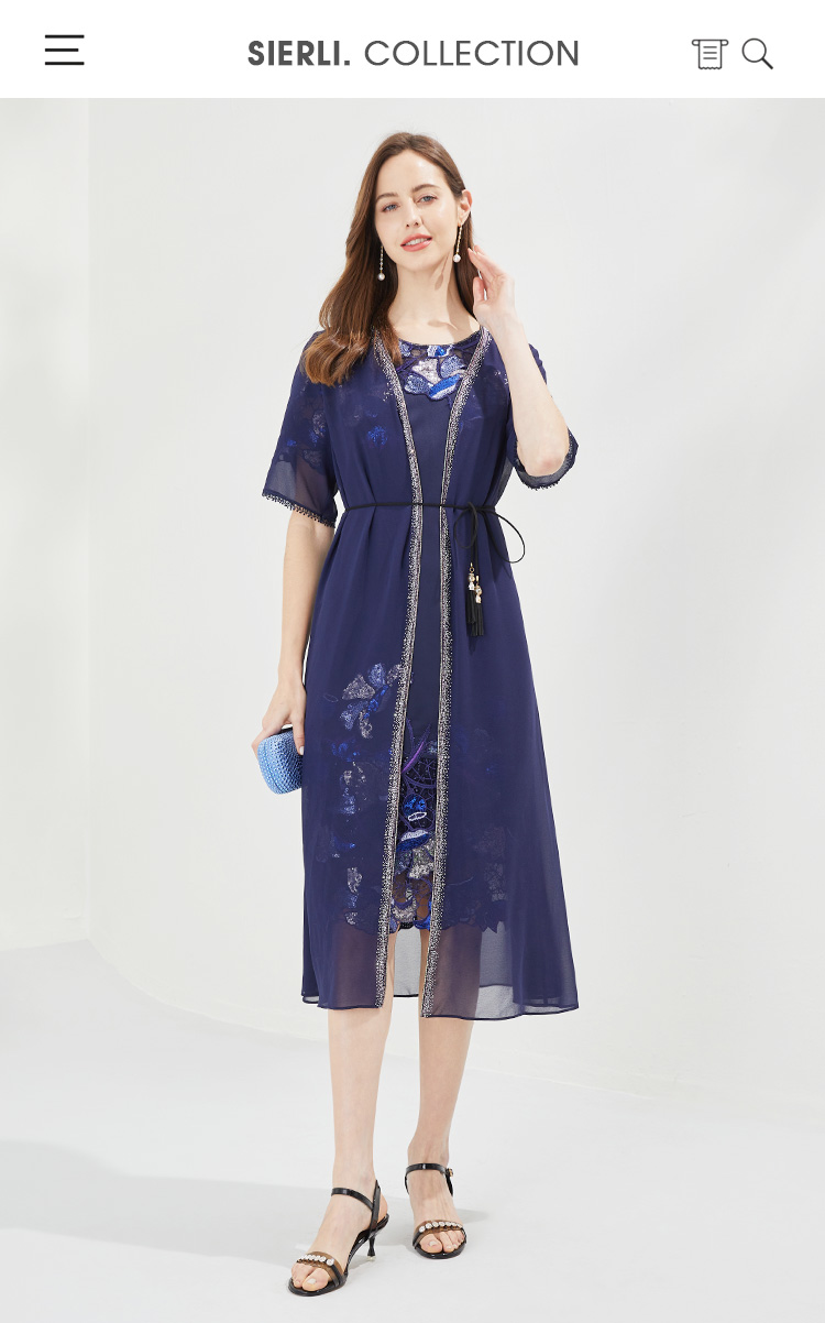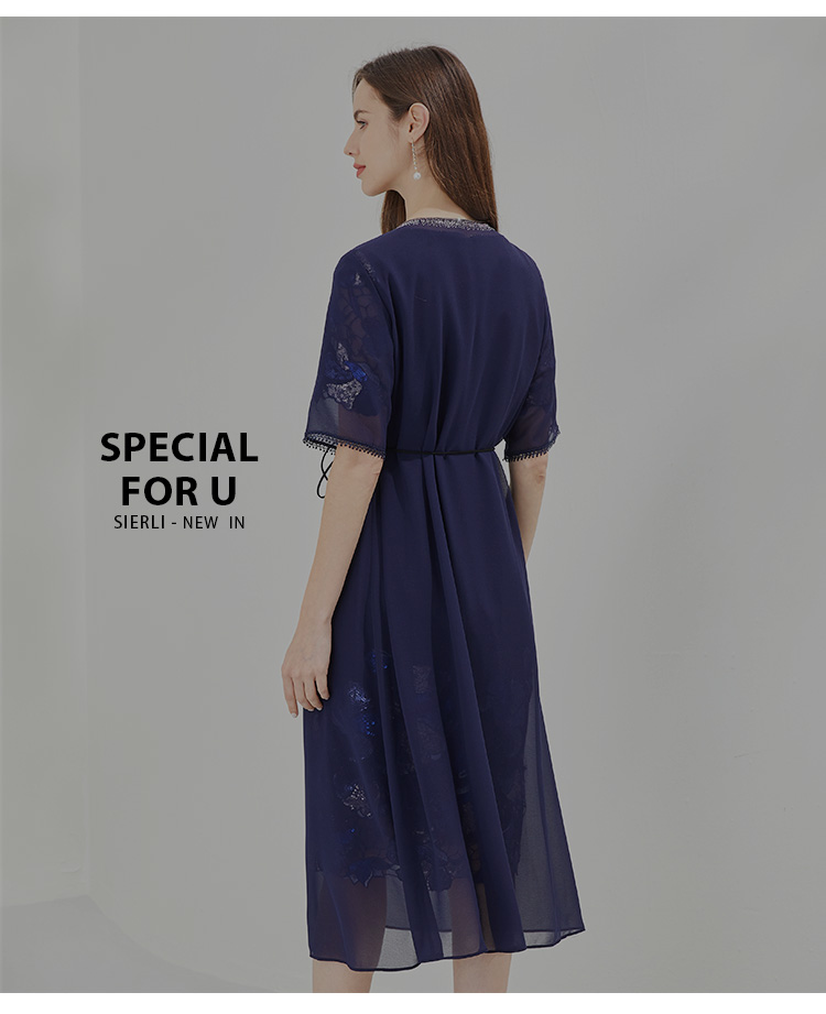 PG83E斯尔丽瑟俪2022年两件套式珠片拼接修身系带式连衣裙