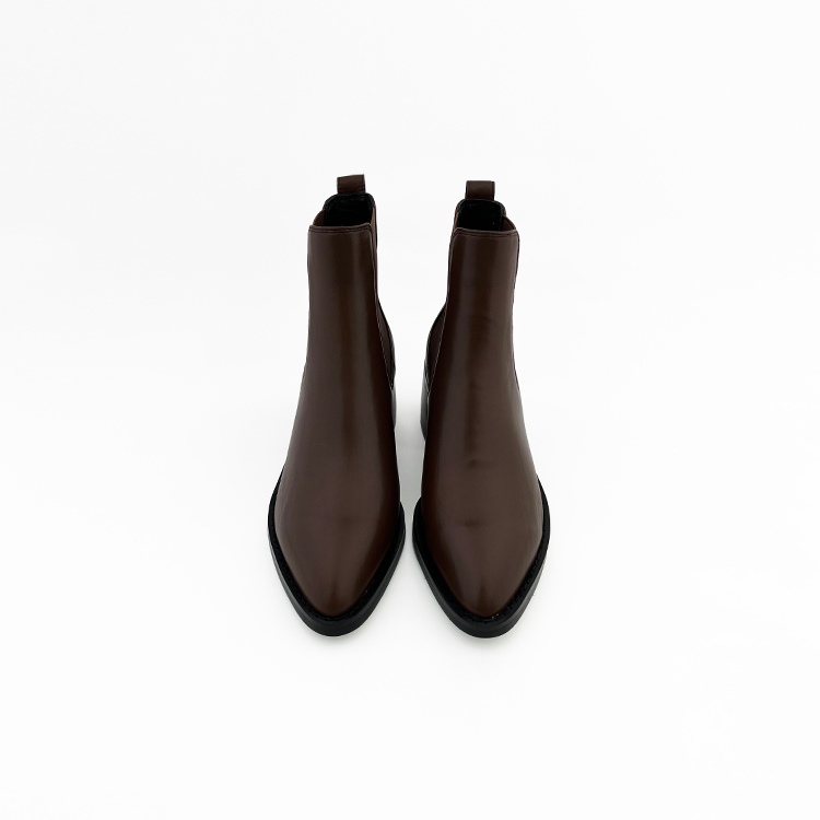 SAFICOO气质焦糖栗子色 尖头女士短靴真皮切尔西靴