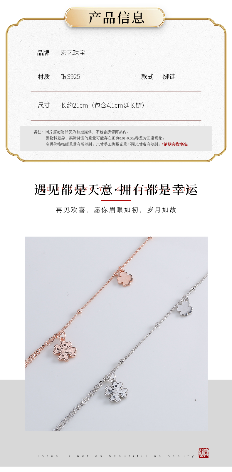 【宏艺珠宝】夏日花序·银s925脚链