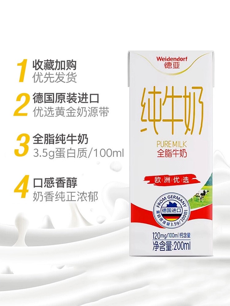 【整箱购买更划算】德国德亚全脂牛奶200ml*30瓶/023159*30 优质蛋白进口奶源浓醇营养好 整箱购买更划算