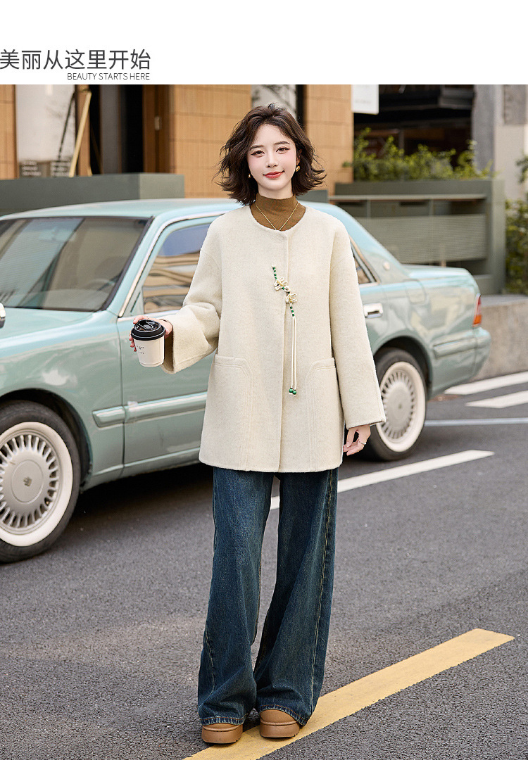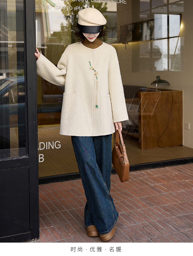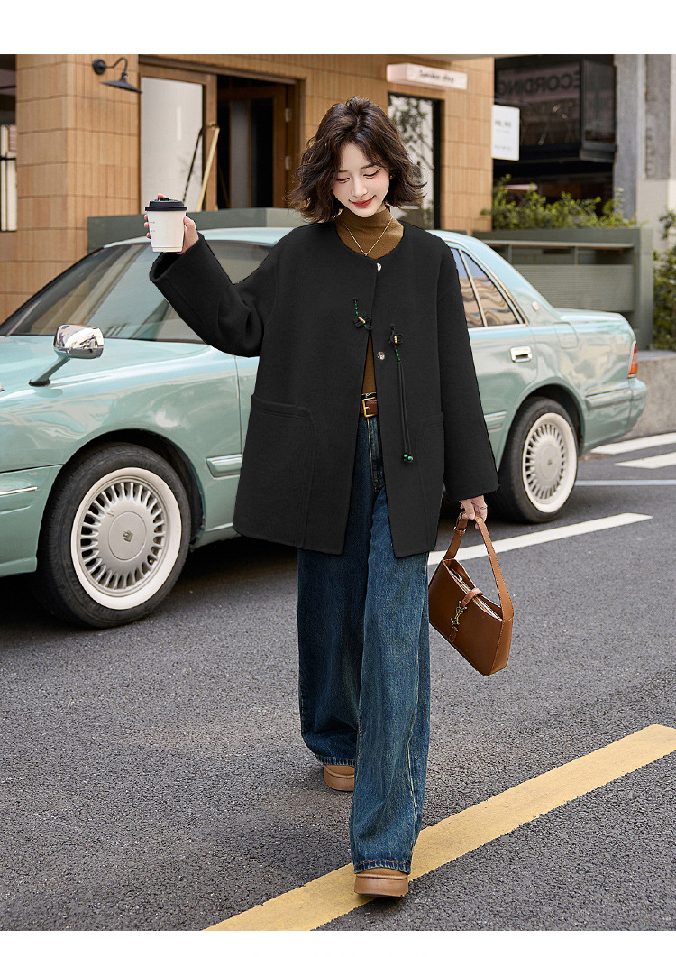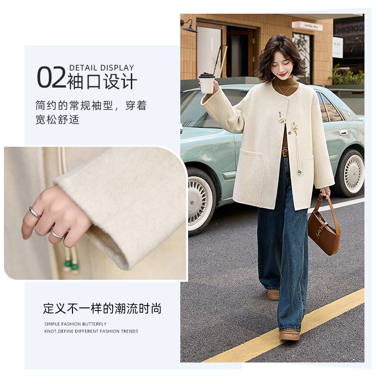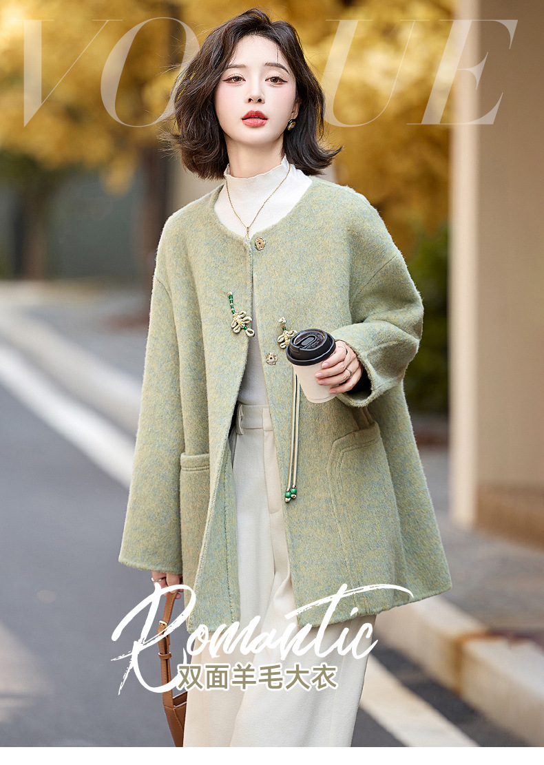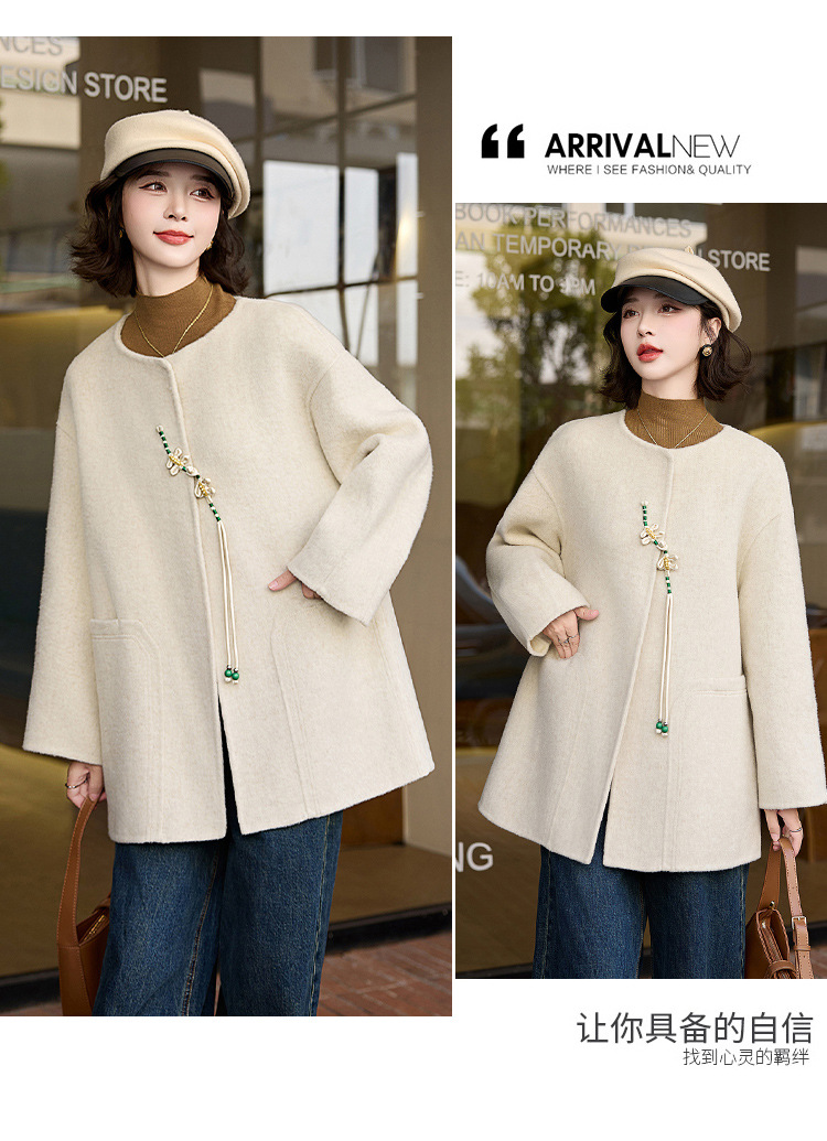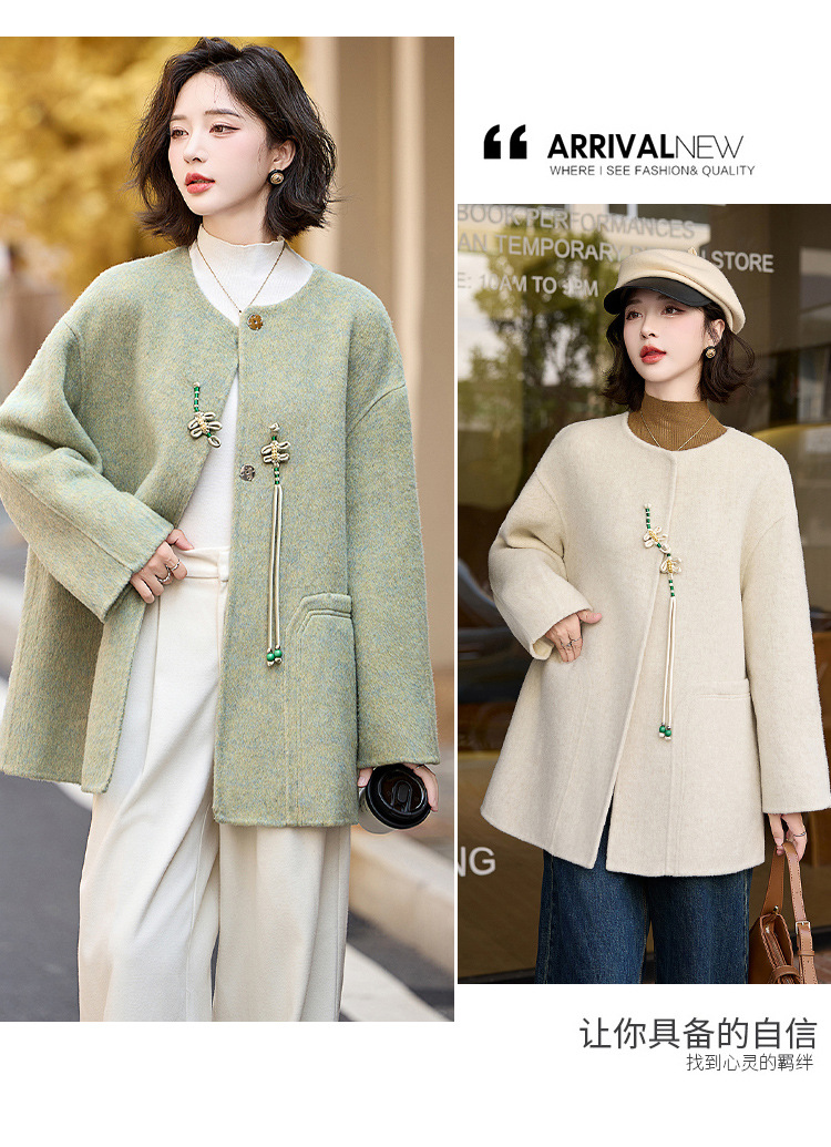 气质新中式中长款,大衣双面呢外套HR-BX2622
