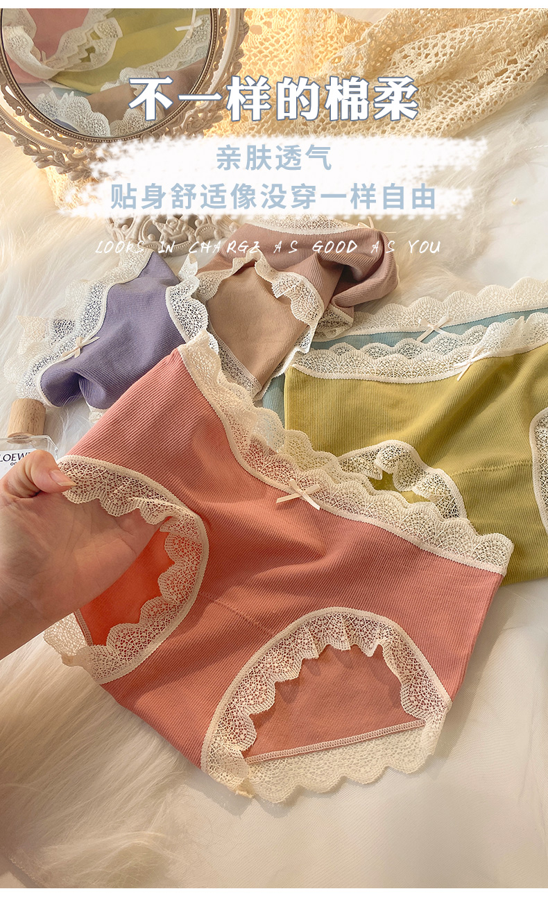 (99元/3条)蕾丝边裸氨32针内裤舒适包臀52050