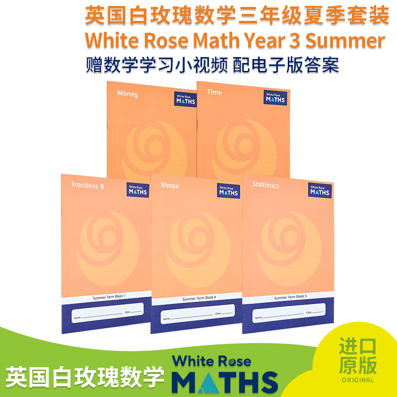 【中商原版】英国白玫瑰数学练习册三年级夏季套装5册 White Rose Math Year 3 Summer Block 1-5 小学分数时间学习英文原版