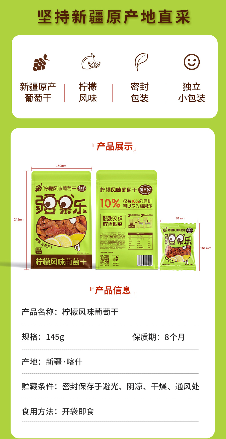 疆果乐 柠檬风味葡萄干 145g